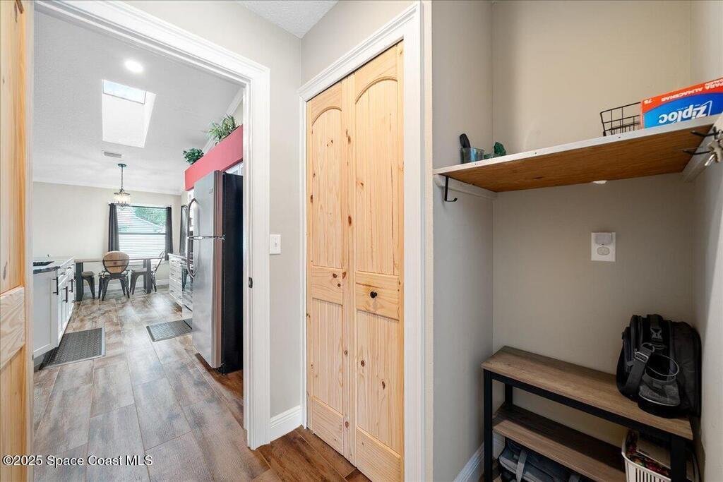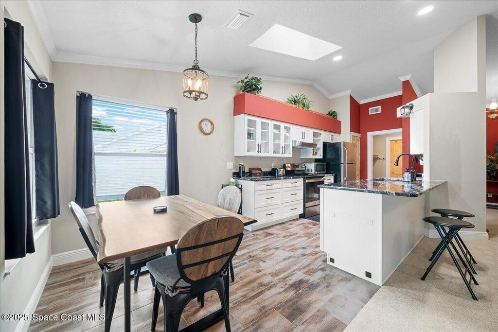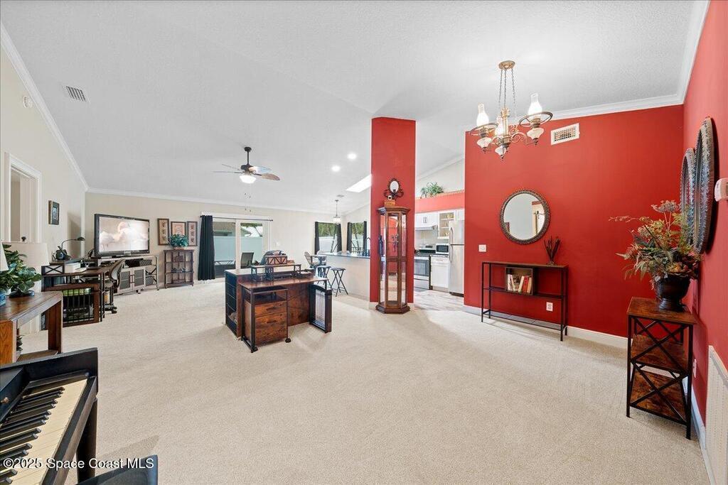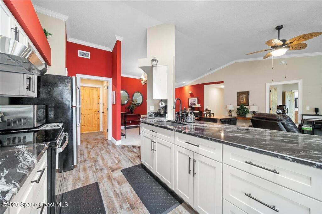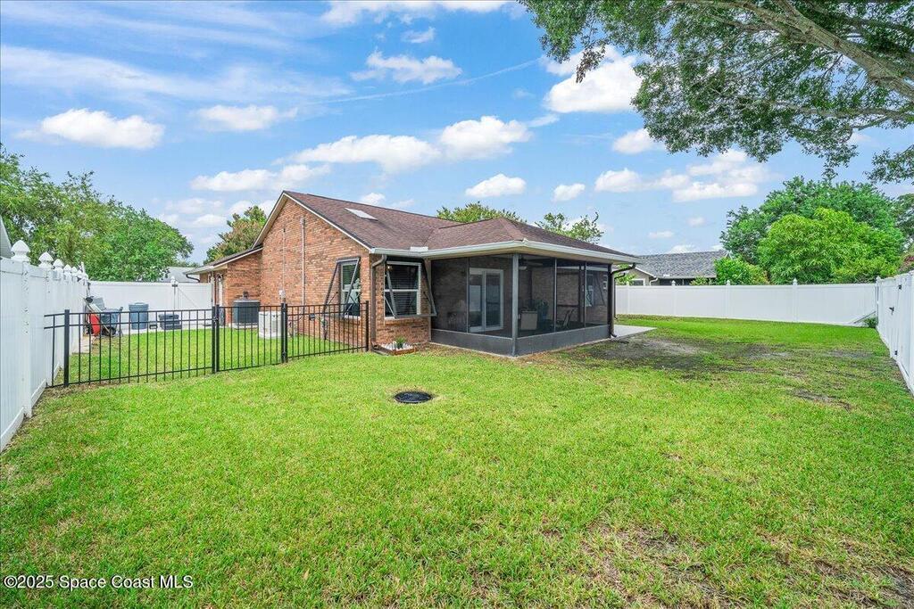 Beautifully updated brick home in Melbourne's Belair Palms neighborhood. Completely move-in ready, this home features vaulted ceilings, crown molding, and custom solid pine interior doors. The renovated kitchen offers wood cabinetry, granite countertops, and wood-look tile, while both bathrooms have been fully updated. Major upgrades include hurricane impact doors & windows with Bahama-style shutters, newer roof, new gutters, driveway, ductwork, tankless water heater, deep well with irrigation, and a whole-house Generac stand-by generator with 500-gallon propane tank. Relax on the screened covered patio overlooking the backyard. Belair is a quiet, established neighborhood just 15 minutes to the beach, 10 minutes to Melbourne Square Mall, and 5 minutes to historic downtown Melbourne. A turn-key property with every detail carefully considered and ready for its next owner. This home will not disappoint!
