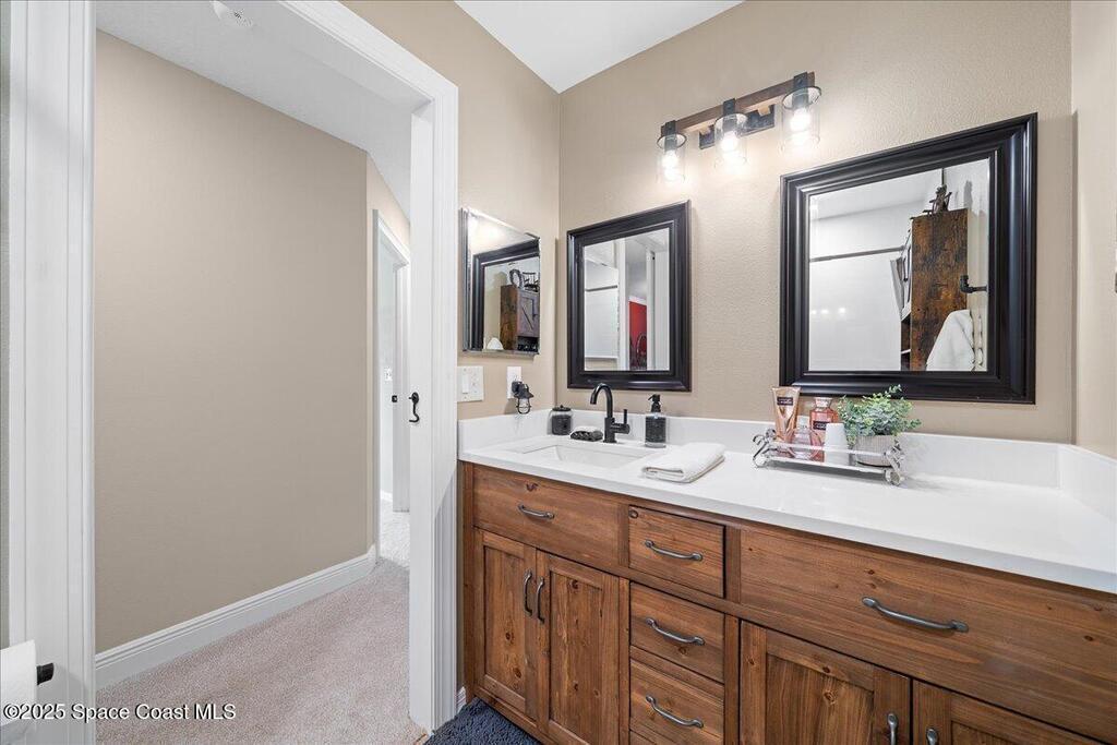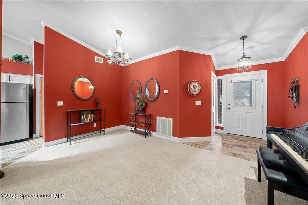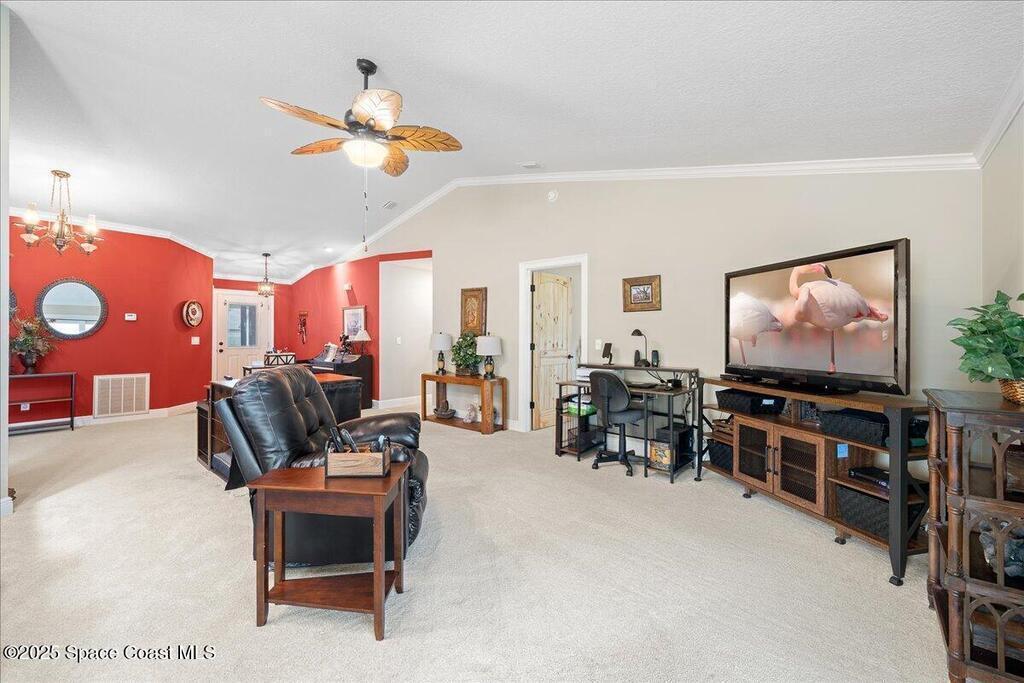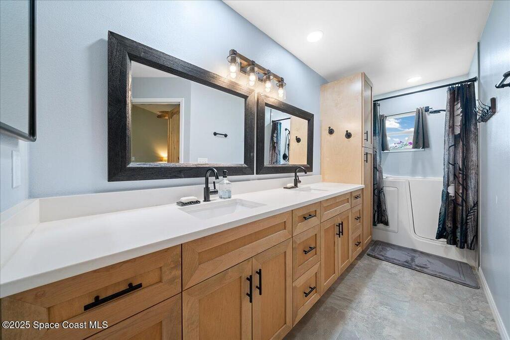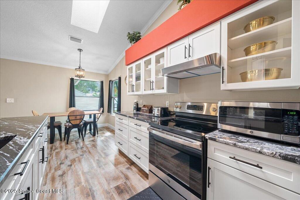 Beautifully updated brick home in Melbourne's Belair Palms neighborhood. Completely move-in ready, this home features vaulted ceilings, crown molding, and custom solid pine interior doors. The renovated kitchen offers wood cabinetry, granite countertops, and wood-look tile, while both bathrooms have been fully updated. Major upgrades include hurricane impact doors & windows with Bahama-style shutters, newer roof, new gutters, driveway, ductwork, tankless water heater, deep well with irrigation, and a whole-house Generac stand-by generator with 500-gallon propane tank. Relax on the screened covered patio overlooking the backyard. Belair is a quiet, established neighborhood just 15 minutes to the beach, 10 minutes to Melbourne Square Mall, and 5 minutes to historic downtown Melbourne. A turn-key property with every detail carefully considered and ready for its next owner. This home will not disappoint!