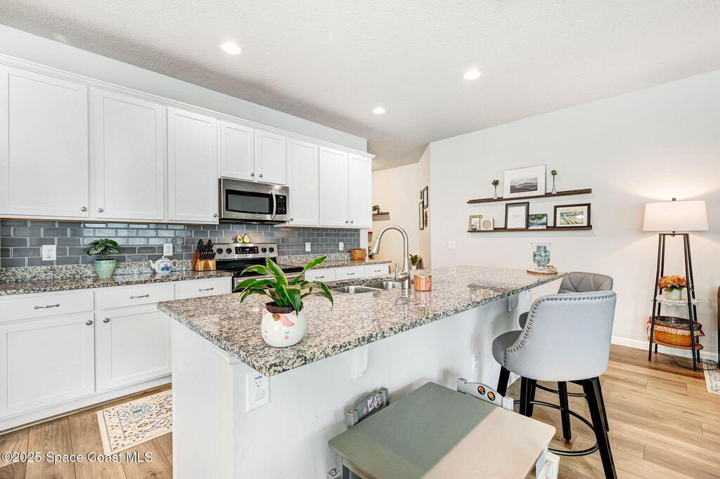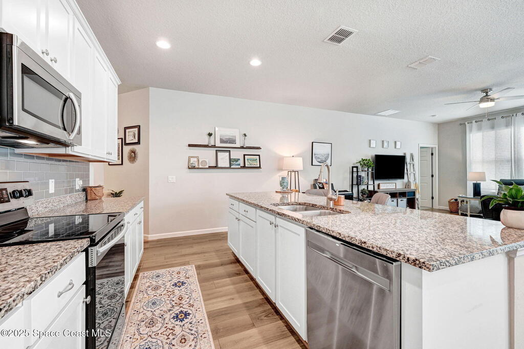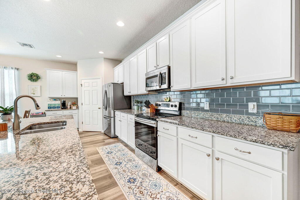 NEW PRICE**Easy to See** This Wonderfully Modern Home was built in 2020 using strong, high-quality CBS construction! Highly Desired Area of West Melbourne, this property features 4 BRs, 2 Baths, and 1,988 SQFT of living space, making it an excellent choice. Clean lines and modern architecture complemented by maturing landscaping and a welcoming front entry. The bright and open layout connects the living room, dining area, and kitchen. Large windows provide ample natural light, creating a comfortable space for relaxing or entertaining. **Deluxe Kitchen** The kitchen comes equipped with stainless steel appliances, including an over-the-range microwave, granite countertops and an oversized island with plenty of prep space. 24 white cabinets and 10 drawers offer generous storage, plus a pantry to keep essentials organized. Adjacent to the kitchen is the Eat-In area with sliding glass doors leading to the screen porch, and fully-fenced backyard, suitable for outdoor...READ ADDENDA FOR MORE