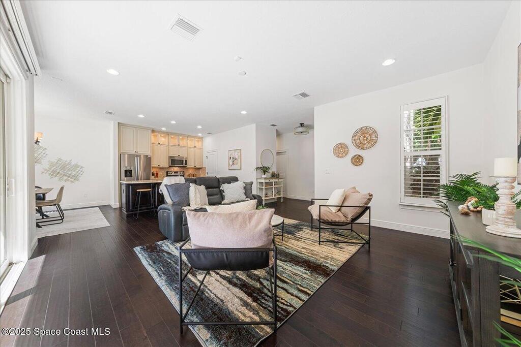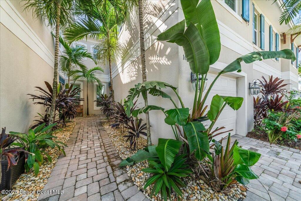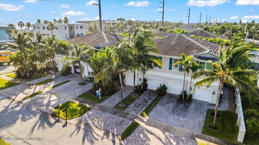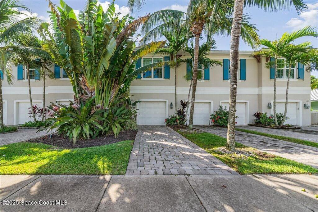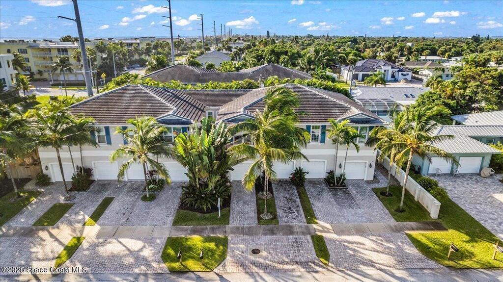 Amazing location! This immaculate townhome is just three minutes from the ocean and a short stroll to the shops and restaurants of 5th Avenue, this West Indies-style townhome blends modern comfort with coastal convenience. Built in 2015 with solid CBS construction, this home offers lasting quality, along with a two-bay garage, paver driveway, and a durable Entegra tile roof. Impact-rated, insulated low-E windows and doors provide energy efficiency and peace of mind during storm season. Inside, scraped hardwood floors and high ceilings create a warm, open feel on the main level. The gourmet kitchen is designed for both function and style, featuring granite countertops, stainless steel appliances, a spacious pantry, and custom cabinetry. Sliding glass doors open to a covered porch and private fenced-in backyard, perfect for outdoor dining or quiet relaxation. Upstairs, the bright and spacious master suite is thoughtfully designed as a private retreat. The en-suite bathroom features dual
