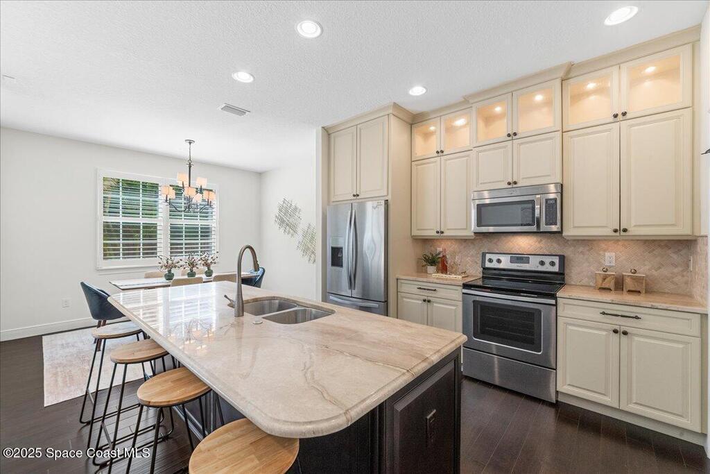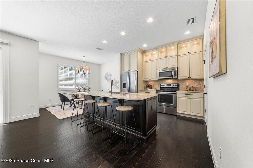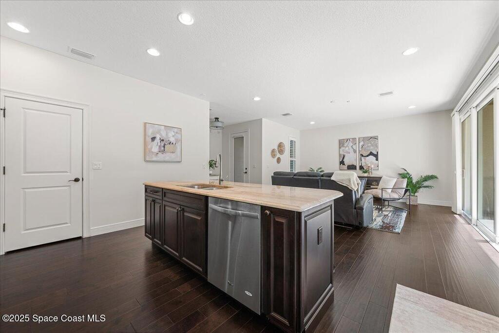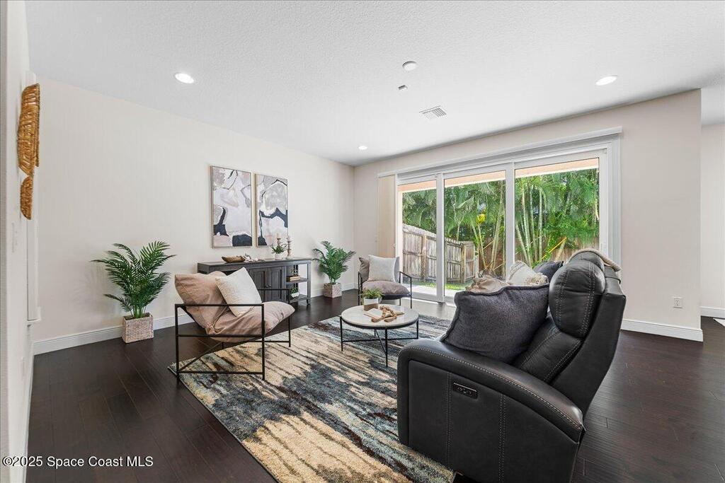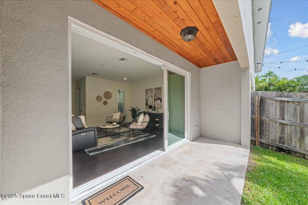Amazing location! This immaculate townhome is just three minutes from the ocean and a short stroll to the shops and restaurants of 5th Avenue, this West Indies-style townhome blends modern comfort with coastal convenience. Built in 2015 with solid CBS construction, this home offers lasting quality, along with a two-bay garage, paver driveway, and a durable Entegra tile roof. Impact-rated, insulated low-E windows and doors provide energy efficiency and peace of mind during storm season. Inside, scraped hardwood floors and high ceilings create a warm, open feel on the main level. The gourmet kitchen is designed for both function and style, featuring granite countertops, stainless steel appliances, a spacious pantry, and custom cabinetry. Sliding glass doors open to a covered porch and private fenced-in backyard, perfect for outdoor dining or quiet relaxation. Upstairs, the bright and spacious master suite is thoughtfully designed as a private retreat. The en-suite bathroom features dual