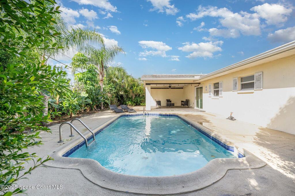 (Exterior photos coming soon) Prime Location! This beautifully designed 4-bedroom, 2-bath, over 1,300 sqft under air heated pool home offers an affordable Florida living at its best. CBS construction, city water & sewer. A circular driveway provides a grand welcome with plenty of parking, space for RV/boat. Inside, the kitchen features granite countertops and tile flooring throughout. The split-bedroom layout ensures privacy, with the original garage converted into a spacious master suite with a walk-in closet and double doors to the fenced yard. Step outside to your private inground pool, large covered sitting area, and backyard oasis--perfect for entertaining or relaxing year-round. Updates include a newer HVAC (2021). Centrally located just 15 minutes from Kennedy Space Center, Blue Origin, Cape Canaveral, and Cocoa Beach, and only 45 minutes to Orlando International Airport. Minutes to shopping, dining, and river activities. Welcome home!