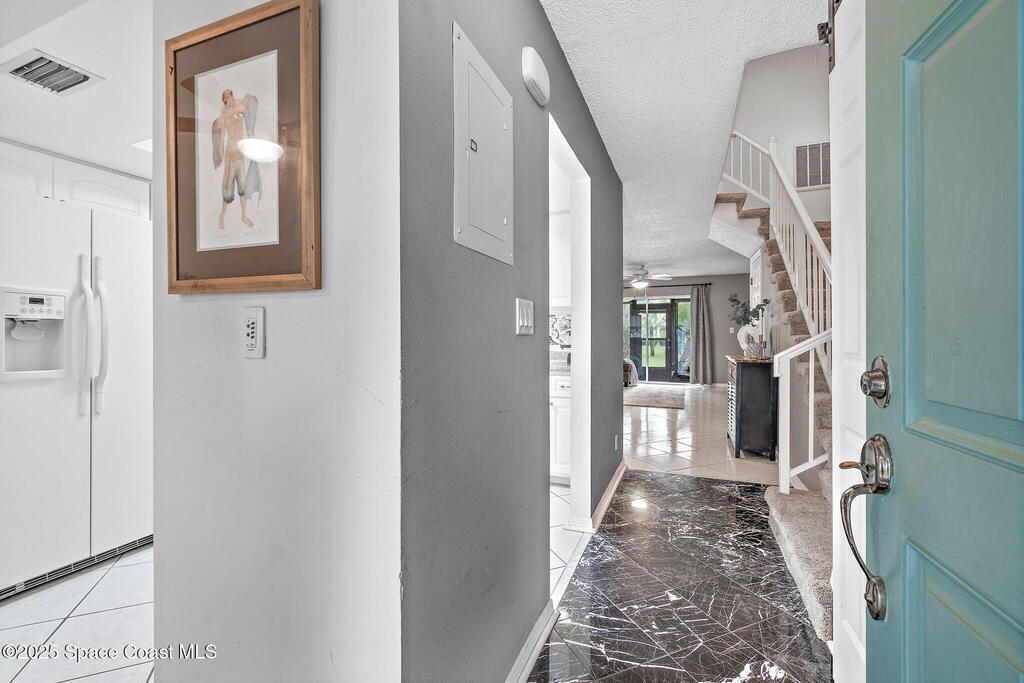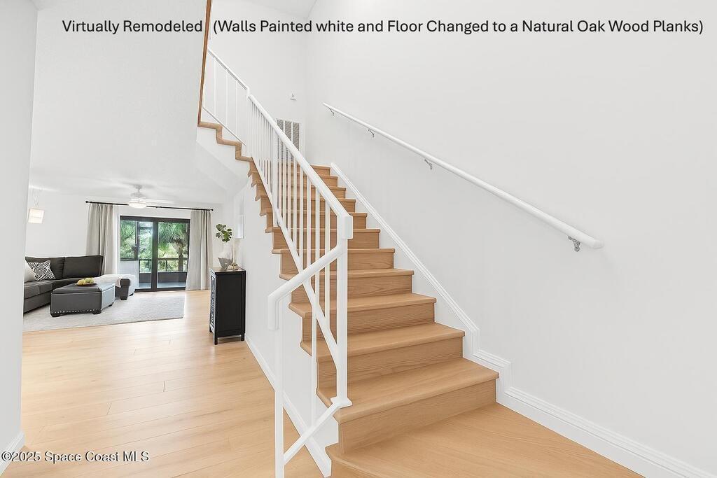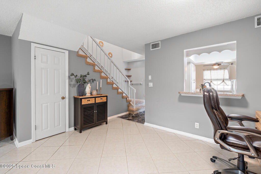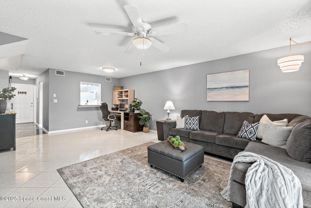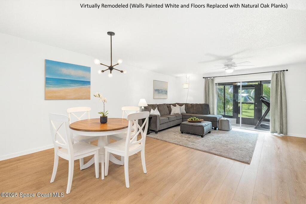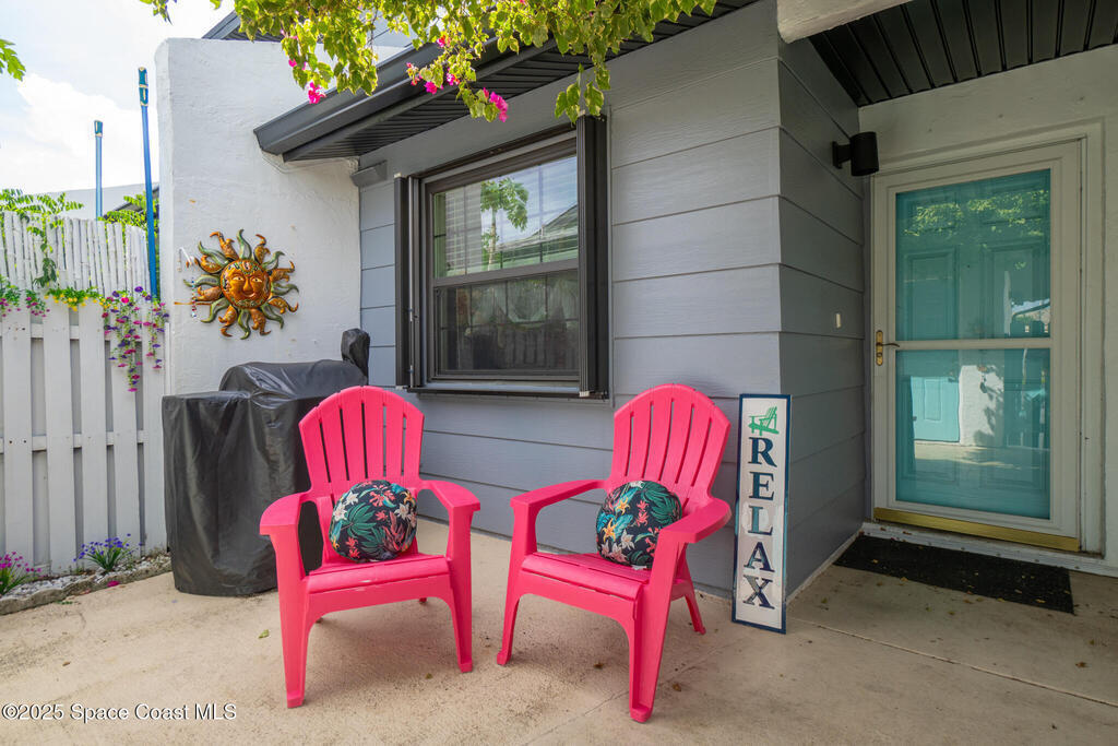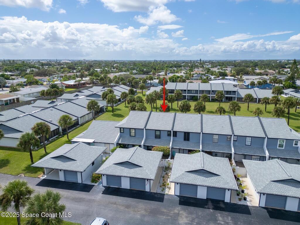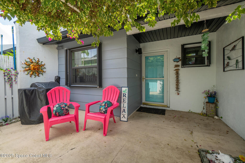 Welcome to 737 Palm Springs Beachside townhome in the Heart of Indian Harbour Beach - Less that a 5 minute walk to the beach, and blocks from local restaurants and shops, this beautifully updated 2-bedroom, 2.5-bath townhome with a 1-car garage offers the perfect balance of coastal and convenience living.This community is all about true maintenance-free living. The HOA covers internet, cable, exterior paint, roof repair/replacement, landscaping, and master insurance--keeping your property insurance costs minimal.Step through the private courtyard shaded by a beautiful bougainvillea pergola --ideal for morning yoga, barbecues, or simply unwinding in the afternoon. Inside, the open first floor features a spacious kitchen with breakfast nook, a large dining/family area, and tile floors throughout. The fully enclosed lanai, creates a versatile flex room--perfect for a gym, home office, or the perfect place for that morning cup of coffee or evening glass of wine. On the second floor