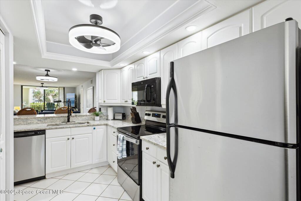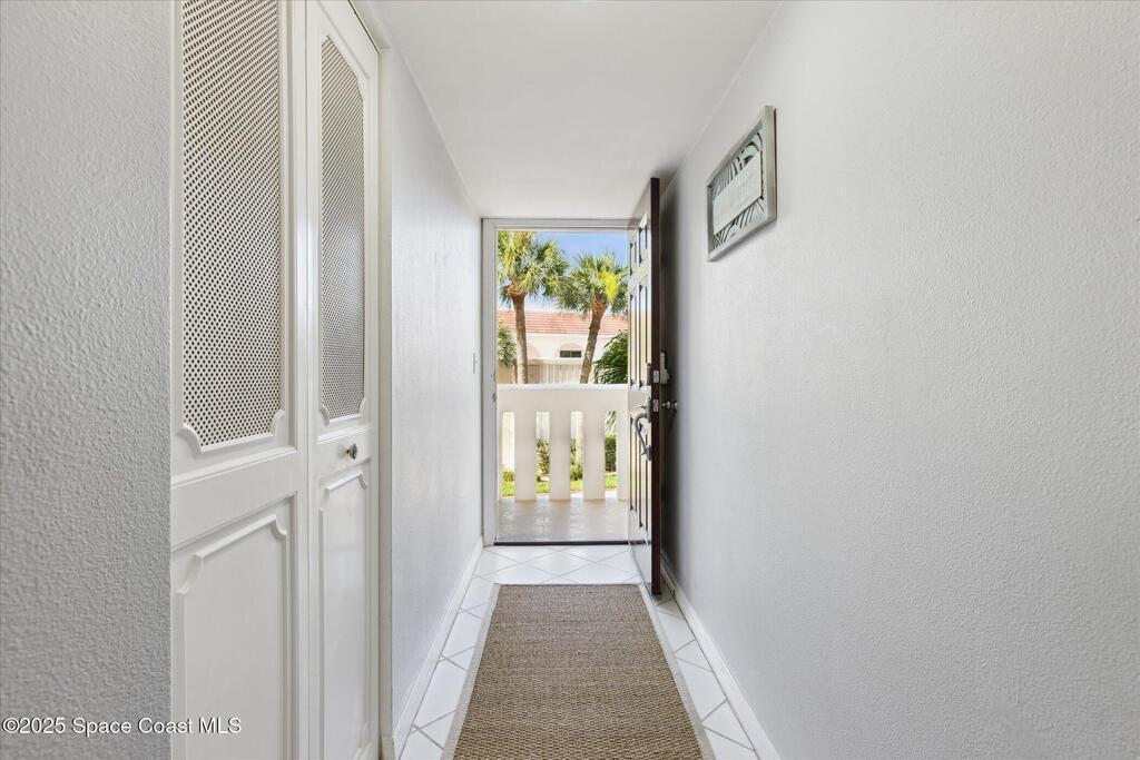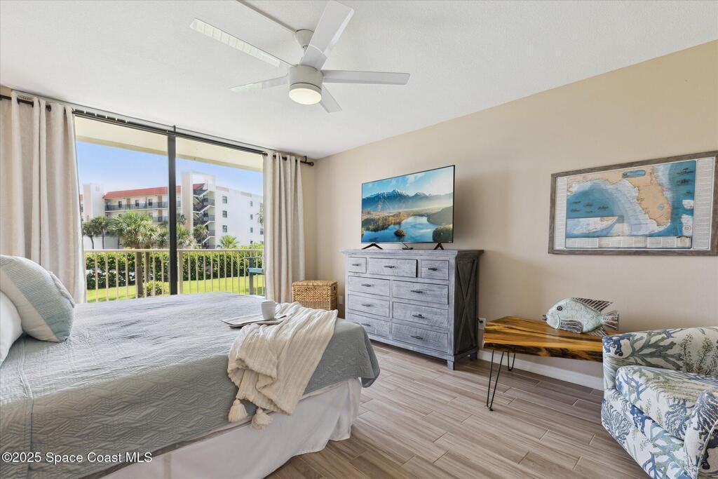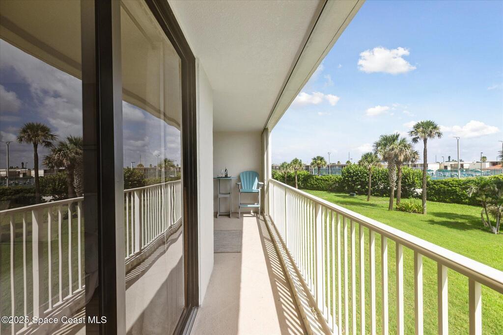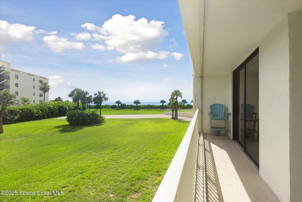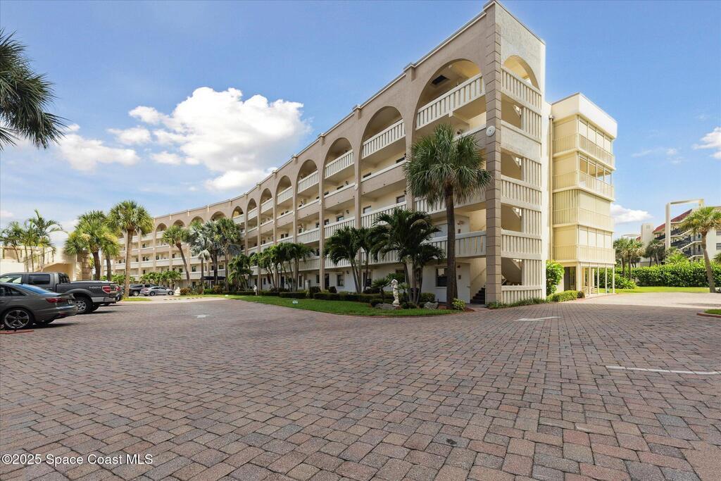 Welcome to your slice of paradise on Florida's Space Coast with this 3/2 condo located in a guard gated community! Nestled within the exclusive Stonewood Towers, this oceanfront complex offers the perfect blend of coastal living, resort‑style amenities, and a prime location. Imagine waking up to the sound of the waves and stepping out onto your balcony to watch the sunrise or rocket launches. This unit is designed for comfort and coastal elegance. The open floor plan and thoughtfully renovated kitchen and baths create a seamless flow of indoor/outdoor living. Step outside to enjoy 13 acres of resort-like grounds, complete with a heated sea-front pool, hot tub, fitness center, tennis, basketball & pickleball courts, shuffleboard, putting green, private beach access and a deeded garage space offers secure parking and storage for all the beach toys. Ideally located, you're just a short walk or bike ride from downtown shops/dining and about an hour from Orlando airport and attraction.