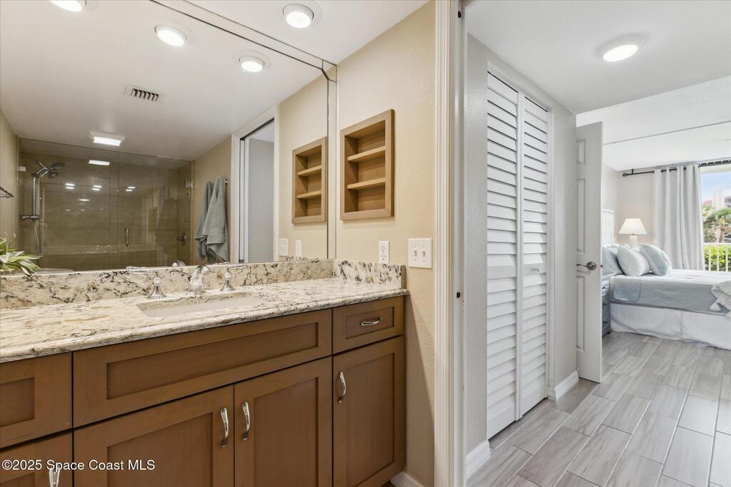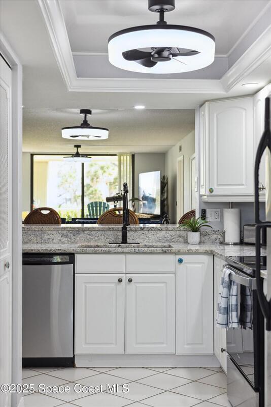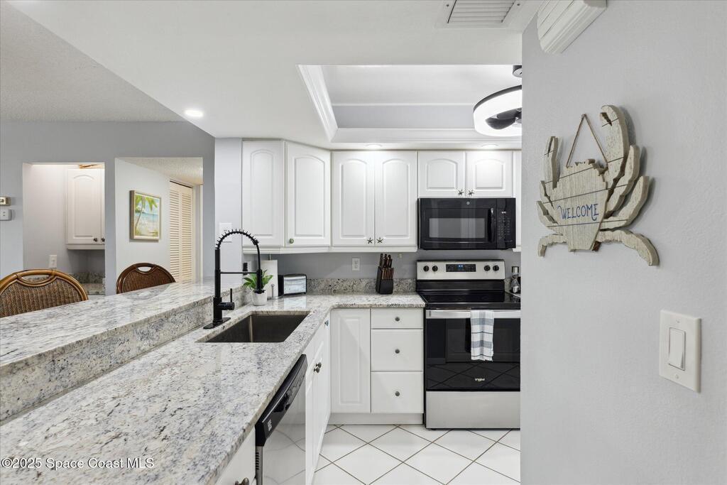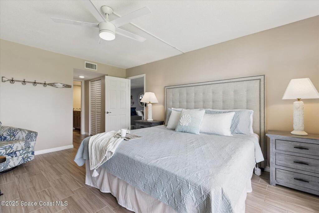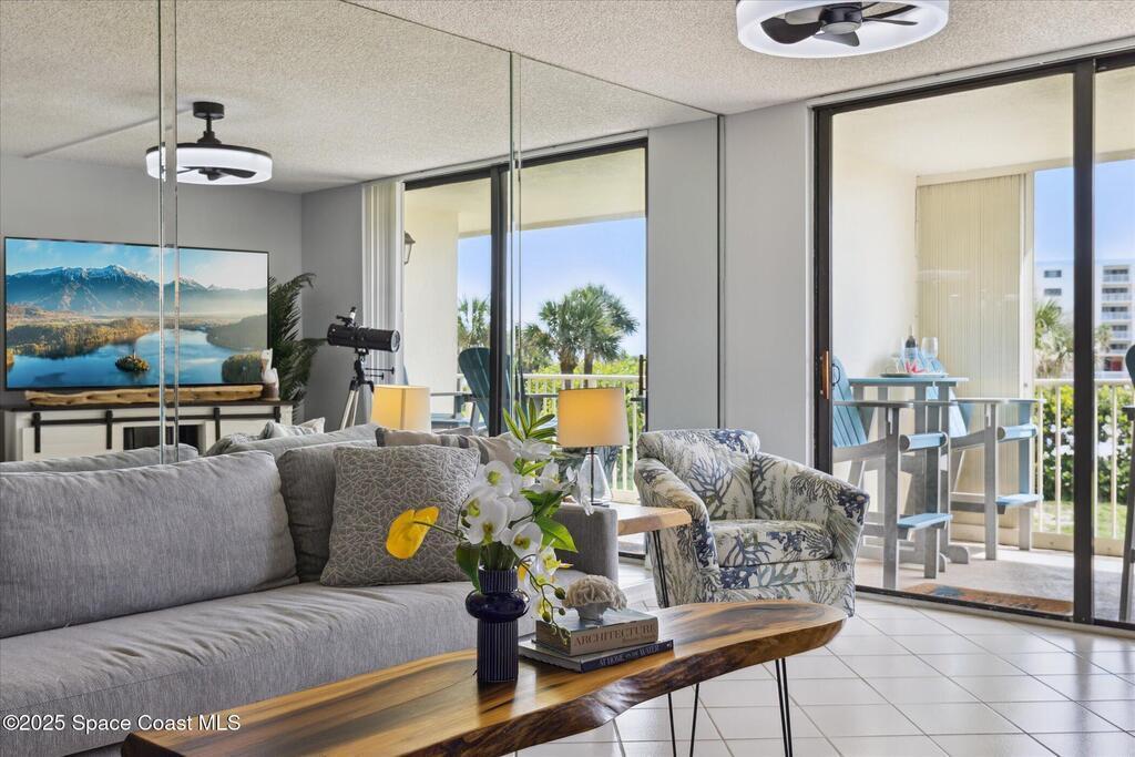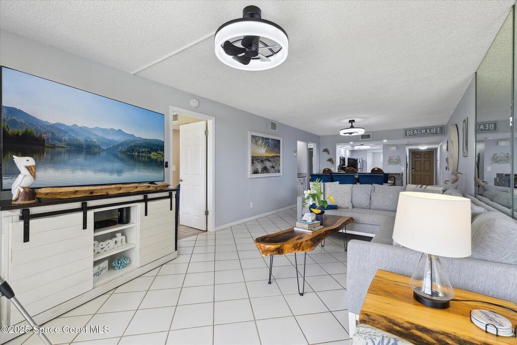 Welcome to your slice of paradise on Florida's Space Coast with this 3/2 condo located in a guard gated community! Nestled within the exclusive Stonewood Towers, this oceanfront complex offers the perfect blend of coastal living, resort‑style amenities, and a prime location. Imagine waking up to the sound of the waves and stepping out onto your balcony to watch the sunrise or rocket launches. This unit is designed for comfort and coastal elegance. The open floor plan and thoughtfully renovated kitchen and baths create a seamless flow of indoor/outdoor living. Step outside to enjoy 13 acres of resort-like grounds, complete with a heated sea-front pool, hot tub, fitness center, tennis, basketball & pickleball courts, shuffleboard, putting green, private beach access and a deeded garage space offers secure parking and storage for all the beach toys. Ideally located, you're just a short walk or bike ride from downtown shops/dining and about an hour from Orlando airport and attraction.