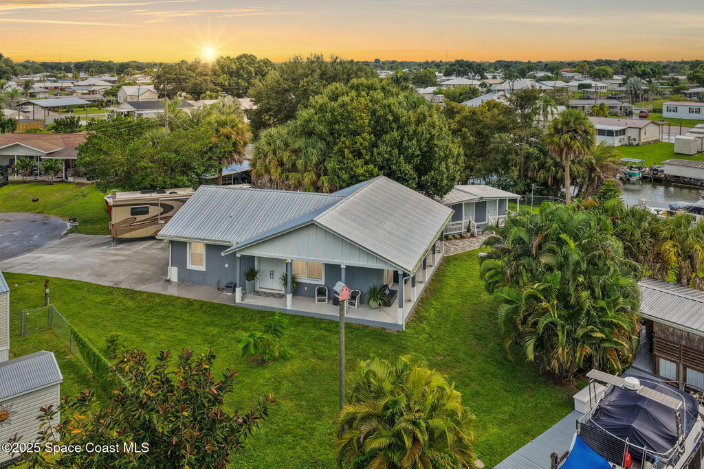Waterfront Luxury Meets Coastal Lifestyle! Newer 2021 Custom-Built Home. Deep Freshwater Canal - On An Oversized Corner Lot. Easy access to Lake Okeechobee and direct access to both the Atlantic and Gulf Coast. Cruise to the Bahamas or Florida Keys in just 1-2 days by boat. No HOA. Bring your boats and RVs! Store 3-4 large boats. Property features: 3 Docks, a Boat Lift, Tiki Bar, and 2 RV Hookups with power and water. A detached workshop with full bath is ready to convert into a mother-in-law suite. Built to the highest hurricane standards with Cement Block (1/2 filled), Durable Metal Roof, and Impact Doors & Windows. Foam attic insulation enhances efficiency. On City Water & City Sewer. Underground gutters and a wraparound porch. Inside, enjoy 9' vaulted ceilings, solid doors, plantation shutters, and life-proof flooring. All kitchen appliances, stackable washer/dryer, and mounted TVs included.