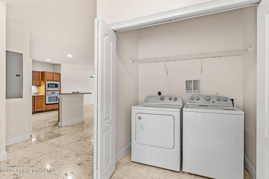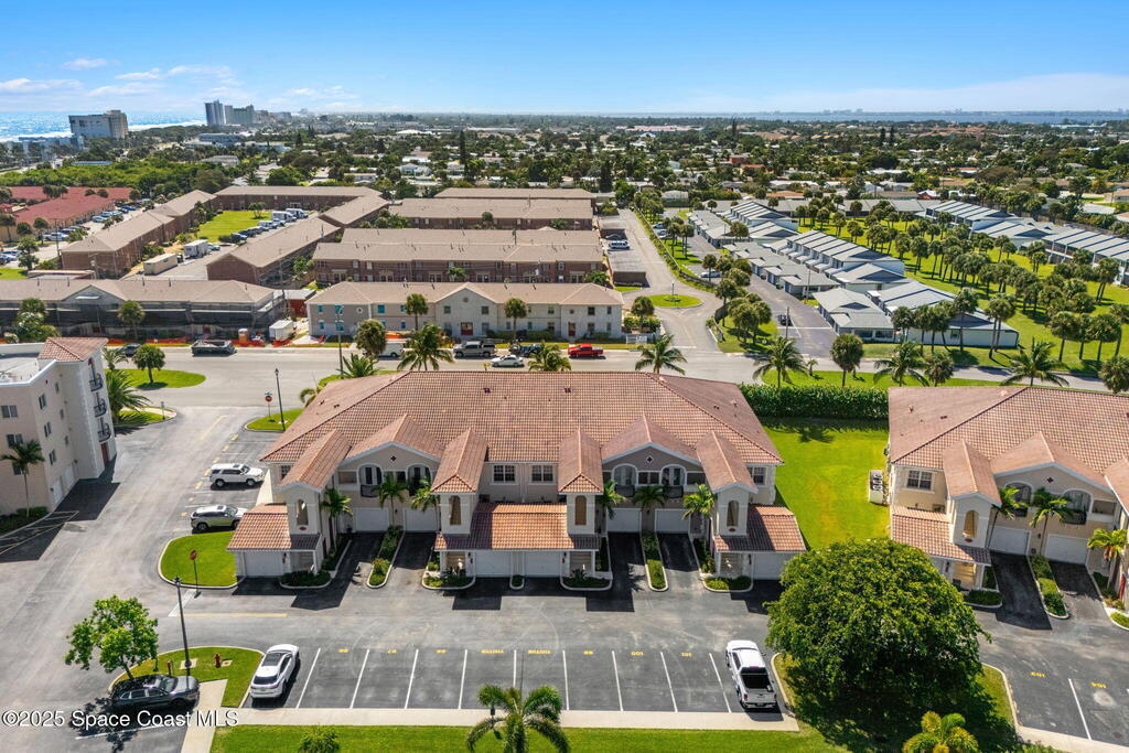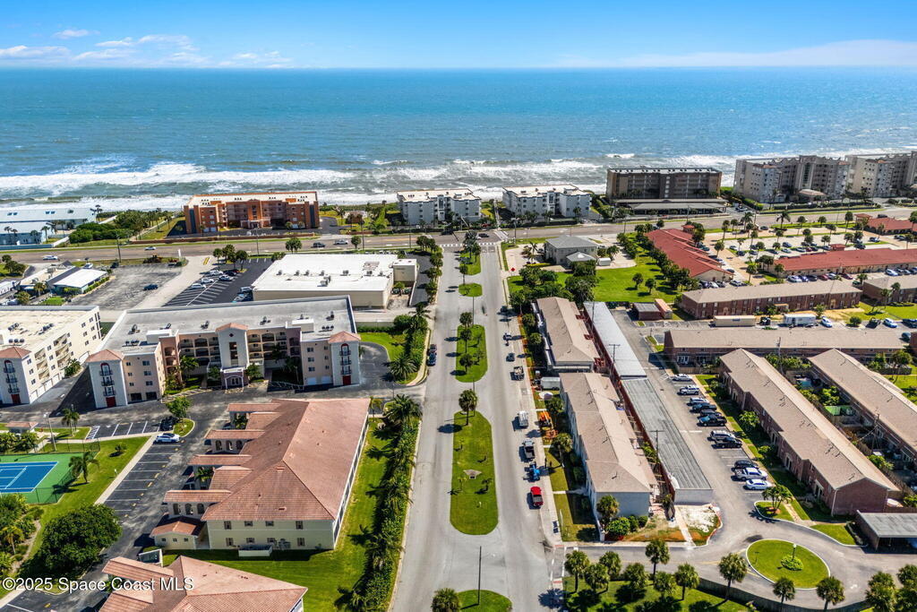 Just two blocks from the ocean, this Indian Harbour Beach condo captures the laid-back essence of coastal living. Sunlight drifts across travertine floors, echoing the natural tones of sand & sea through an open layout that feels both bright & grounded. The spacious bedrooms are well appointed, offering room for guests or quiet mornings, while impact windows fill each space w/ soft coastal light. Being on the first floor means easy access to everything, from morning coffee on the patio to afternoon walks to the beach & effortless days spent near the water. A private garage, an assigned space & plenty of guest parking make life simple for both you & your visitors. The community pool glimmers beneath swaying palms, offering a peaceful spot to unwind, while the tennis & pickleball courts keep the coastal energy alive. Set among local cafes, seaside parks & the timeless rhythm of Indian Harbour Beach, this condo embodies an everyday kind of escape where the ocean always feels within reach