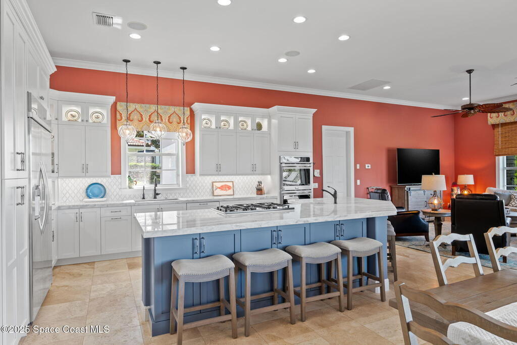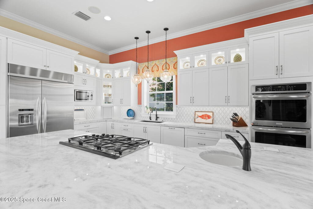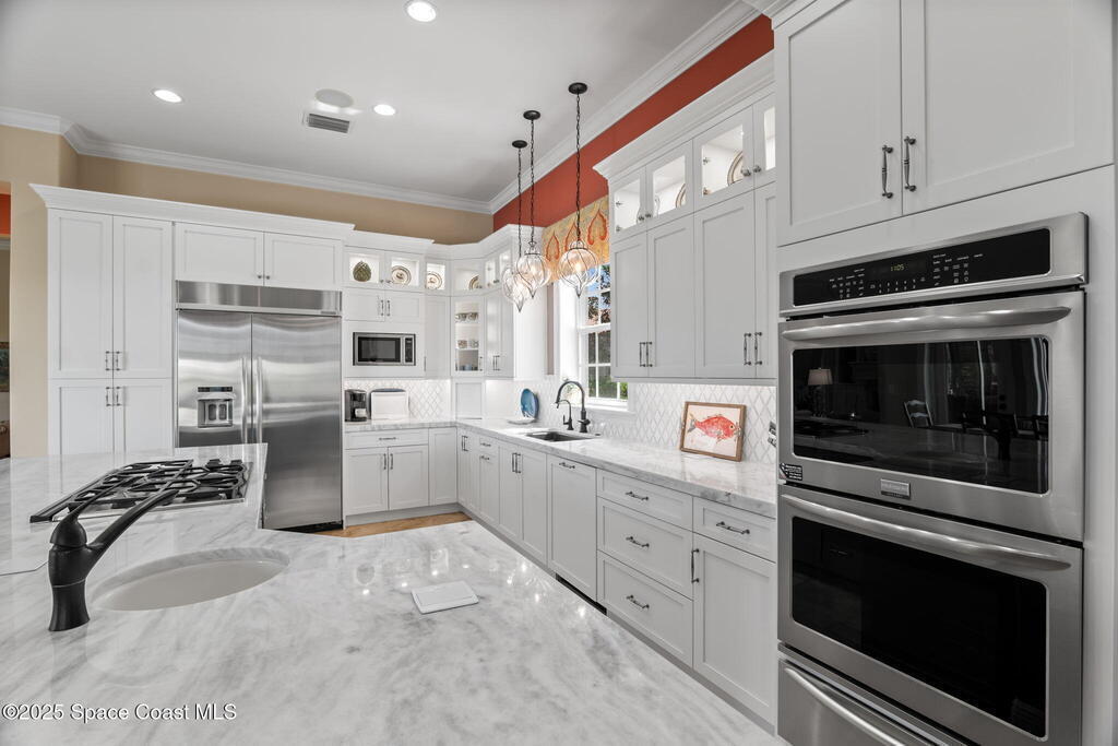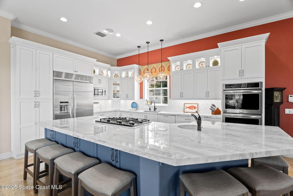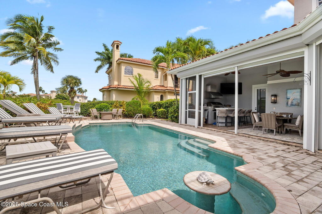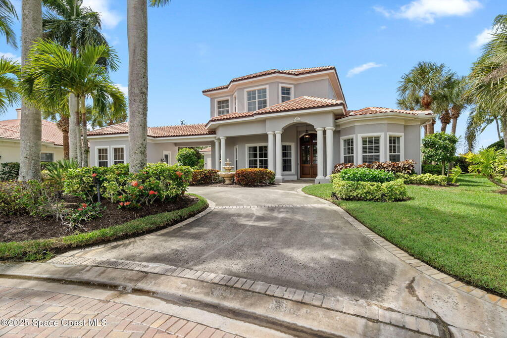 Located in desirable Grand Harbor Golf Club community. This waterfront estate offers 4BR/4.5BA, 3-car garage, with harbor, lagoon, & river views. Features include New 2023 roof, Newer A/C's, fresh exterior paint, renovated kitchen with large island, 4 renovated ensuite baths, new bedroom carpet, & dual primary suites (1 upstairs w/ balcony, 1 downstairs). All bedrooms have walk-in closets and ensuite bathrooms. Renovated summer kitchen and covered patio will roll down screens and shutters. 2 championship golf courses, racquet sports complex, & beach club. The Golf Club has availability for new memberships at this time!!