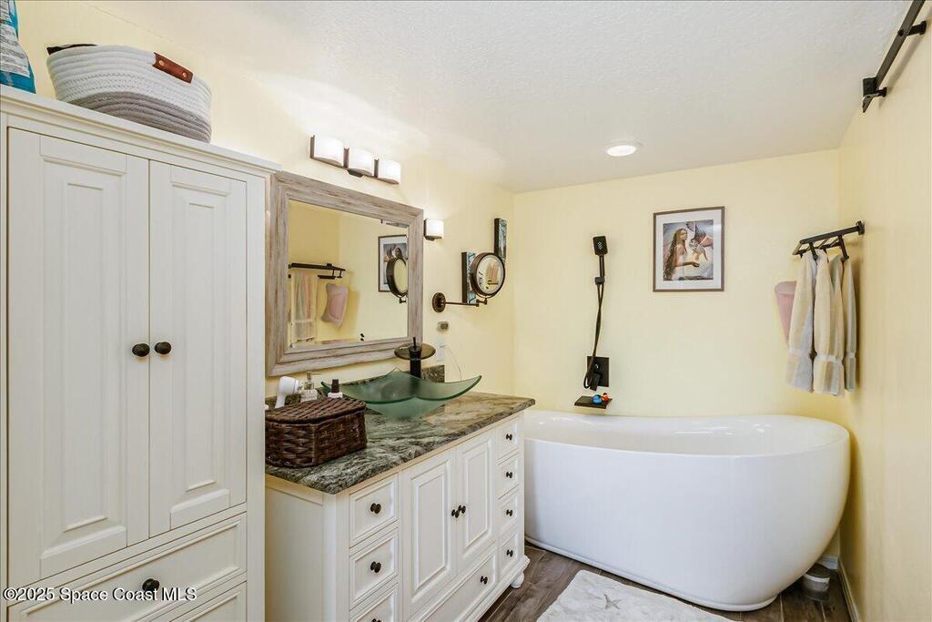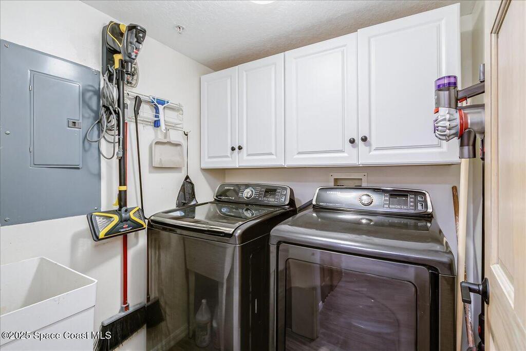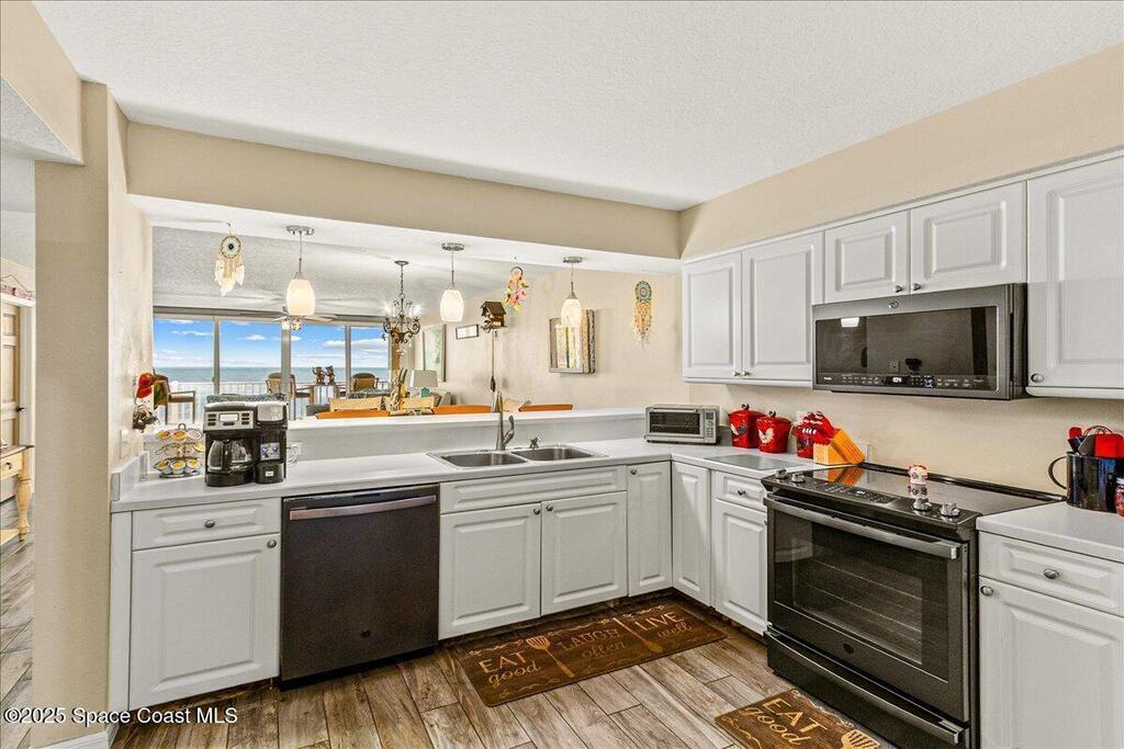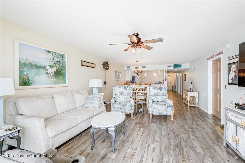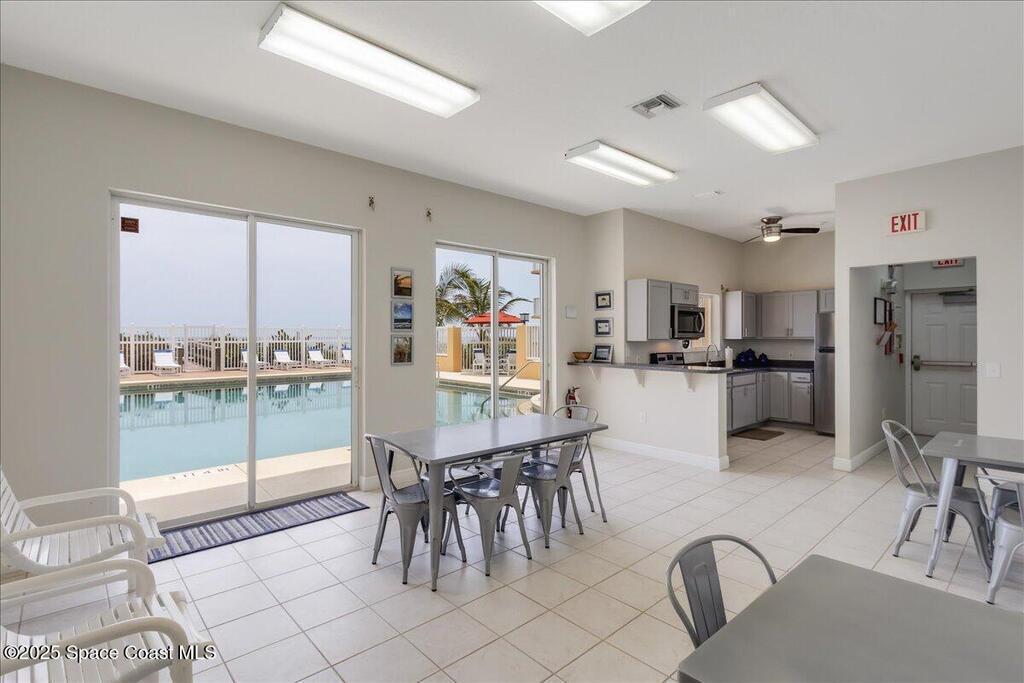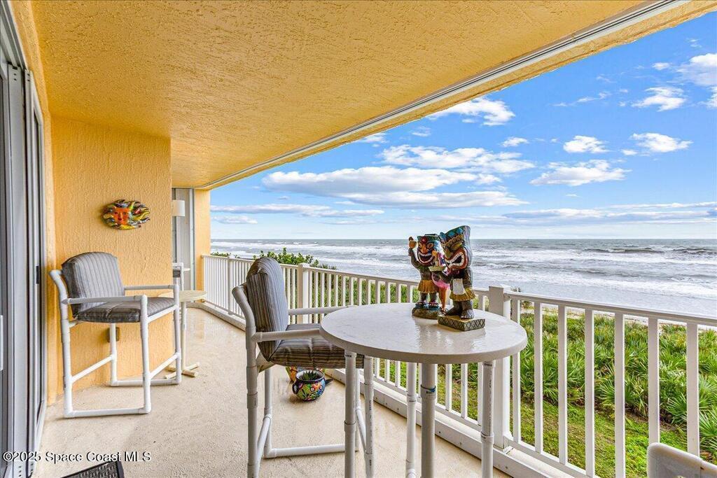 Fully Furnished OCEANFRONT coastal inspired condo. This beautiful condo is ready for your next vacation in paradise! Enjoy the views of the beach, sunrise and rocket launches from your balcony. Primary has a spectacular view and balcony access along with a king size bed with split adjustable tempurpedic remote control, walk in shower and soaking tub. One guest bedroom has a queen size bed and the other guest room is set up as an office or work out space. Condo has a 1 car garage for tenant to use. Unit features an in unit laundry room for time saving convenience. New impact windows for peace of mind. Community amenities include clubhouse, pool and beach access. Conveniently located near restaurants and shopping. Minimum 6 month rental.