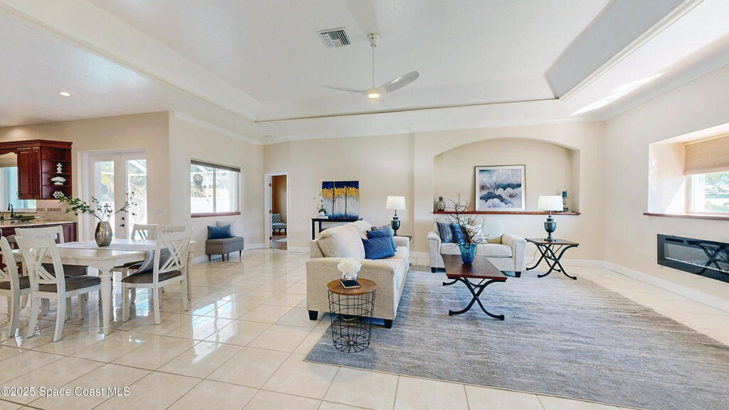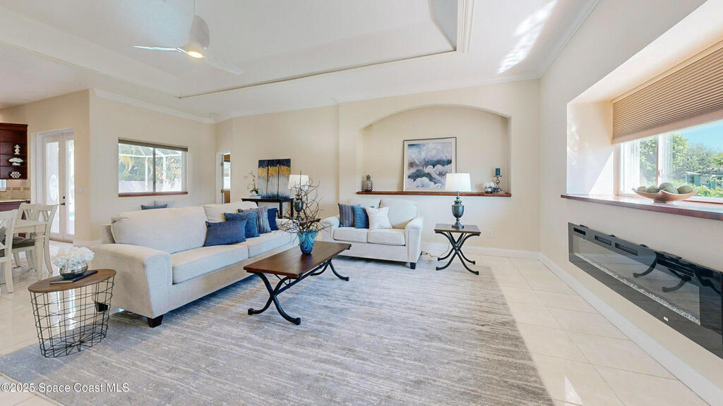 Welcome to your dream coastal retreat! This completely updated, move-in-ready single-family home is ideally situated on a beautifully landscaped corner lot in the heart of Cocoa Beach, just a short walk to the sand and surf.Step inside to discover a bright, open floor plan with soaring cathedral ceilings, filling the home with natural light and spaciousness. The gourmet kitchen is a chef's paradise, featuring luxurious quartz countertops, custom cabinetry, and top-of-the-line Viking gas appliances - perfect for entertaining or everyday living.Enjoy cozy evenings by the elegant electric fireplace, and rest easy with the peace of mind provided by a whole-home generator--ready for any Florida weather.Outdoors, escape to your private oasis with a screened-in saltwater pool, surrounded by lush, mature tropical landscaping that offers beauty and privacy. Whether you're relaxing poolside or hosting guests, this home blends comfort and style effortlessly.