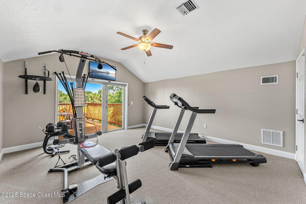 Luxury living awaits you in this one-of-a-kind Merritt Island Estate. Boasting over 2 acres of property, this pool home is situated on Honeymoon Lake, providing breathtaking views and direct access to the Indian River. The owner's suite is complete with double walk-in closets, separate tub & shower, and dual vanities. Tall white cabinets, granite countertops & backsplash, and stainless steel appliances give the kitchen a bright and sleek look while the breakfast bar, kitchen island, and ample countertops make it perfect for hosting. Two separate upstairs areas provide flexibility for your lifestyle, allowing you to use them as extra bedrooms, gyms, or bonus rooms. Whether from the balcony or from the solar-heated pool, the backyard's northern exposure allows for stunning views of sunrise and sunset. With 2018 barrel tile roof, two new HVACs, and a boat lift already in place, this home is truly turnkey, all you need to do is pull up in the boat!