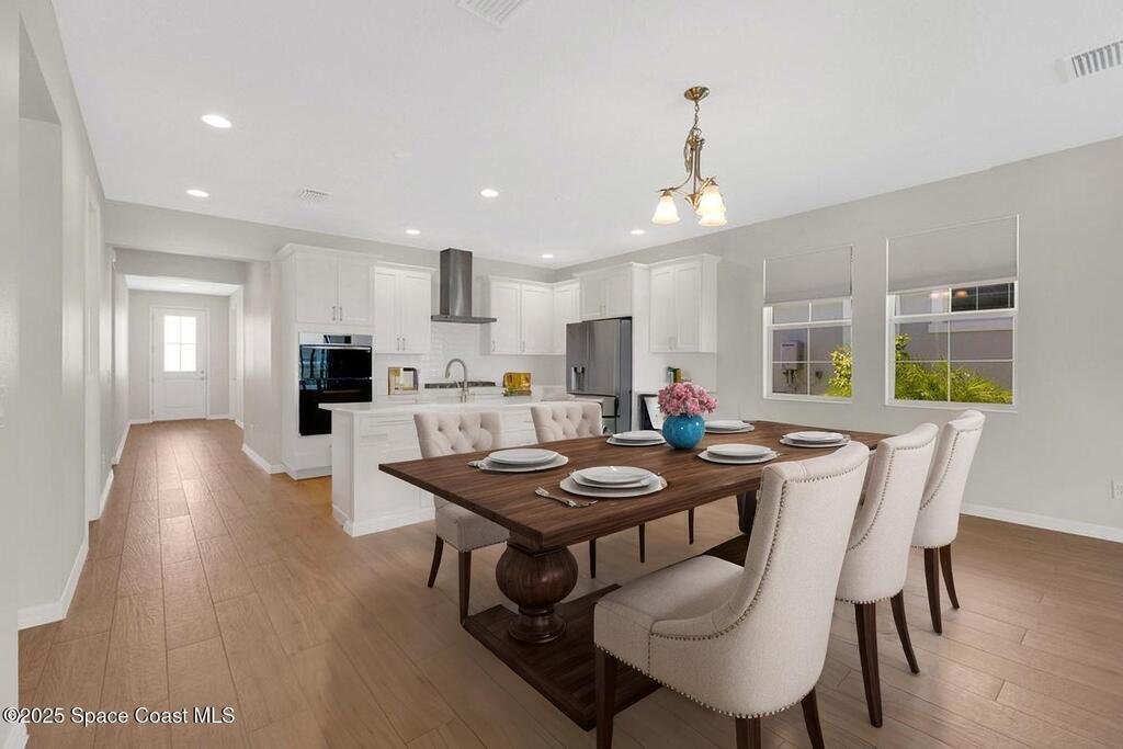 Experience luxurious Viera living in this stunning 4-bedroom pool home, complete with a versatile flex room. Enjoy spectacular sunsets from your private backyard oasis, featuring a sparkling pool perfect for relaxing or entertaining. The gourmet kitchen is a chef's dream, showcasing premium finishes, a gas stove, stainless steel appliances, and beautiful quartz countertops. Elegant upgraded lighting and designer hardware add a modern touch throughout. Enjoy peace of mind with impact-resistant windows, and a low-maintenance lifestyle with lawn care included in the HOA fee. An open-concept design with natural light fills the spacious living areas. The large master suite offers serene lake views, a huge walk-in closet, and a double-sink walk-in shower. Outside, a beautifully landscaped yard enhances the curb appeal. Located near top-rated schools, premier shopping, and dining, this home is a gem in one of Viera's most sought-after communities.