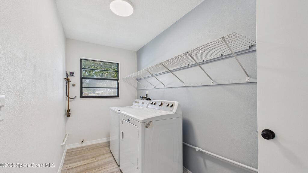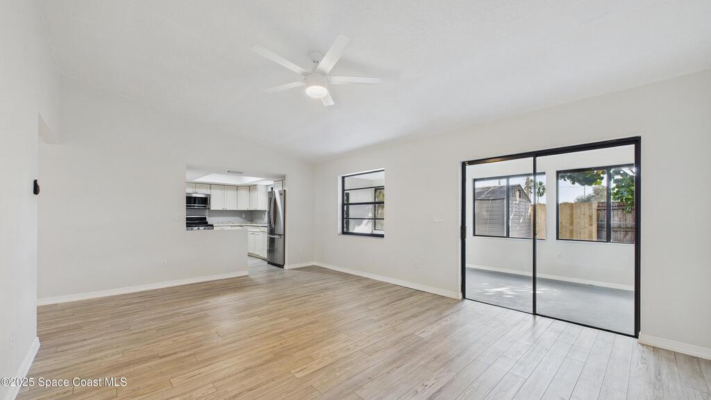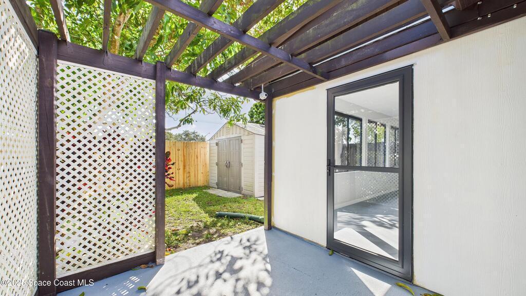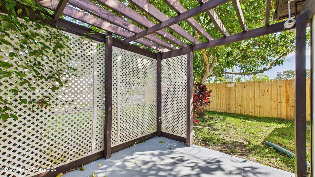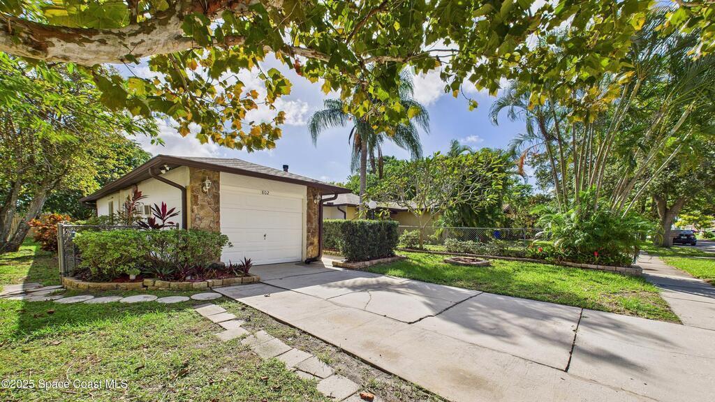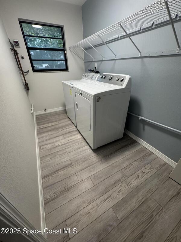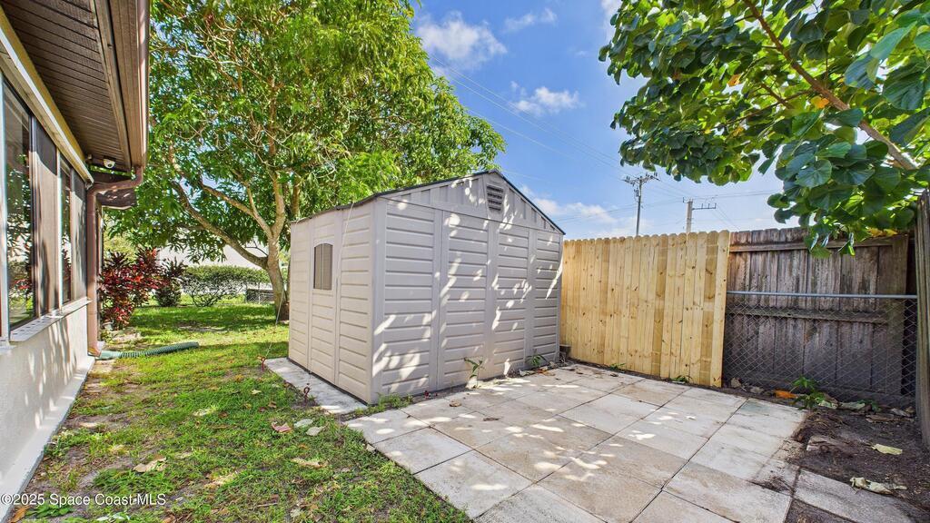 Lender fell thru !!! Completely Remodeled Like New Half Duplex - 2 Bedroom with 2 Gorgeous New FULL Baths. All New Flooring Throughout - Luxury Vinyl, Fresh Light & Bright Painted Inside and Exterior, Newly Stained Concrete on Back Patio and In Garage. Brand New Tankless Water Heater gives Instant Hot Water, Refrigerator, Brand New Dishwasher, Microwave, Stove, Washer & Dryer all Convey with the Property. This adorable home with a Garage has a lushly landscaped fenced yard with Mango Trees, and shrubbed entrance to front door, Entire yard is fenced with lots of room for child play and dogs to run, A Beautiful Recently New Shed with Locking Door is in Back Yard and houses all the Aluminum Shutters that Cover All the Windows which helps with your Insurance, Roof was New in 2019. This Home is a Must See Conveniently located off Murrell which runs between I-95 and US-1 easy commute North to Space Center, East to Space Force Base or South to Palm Bay Corporations.