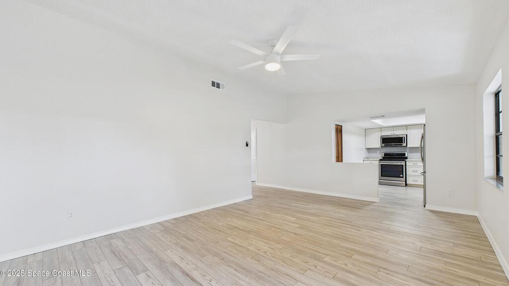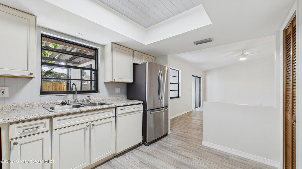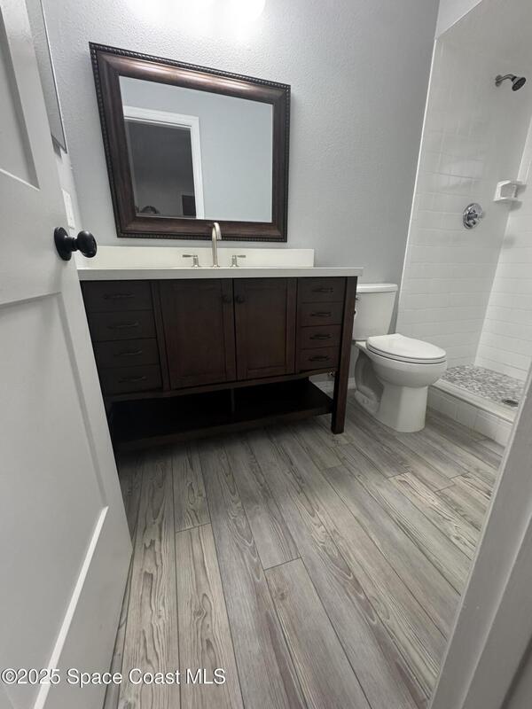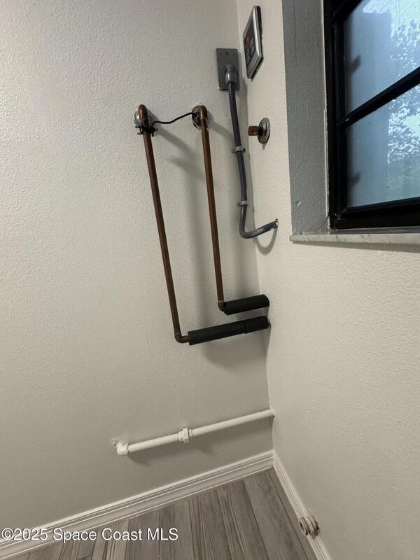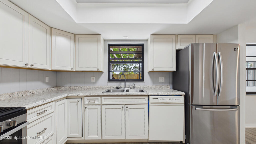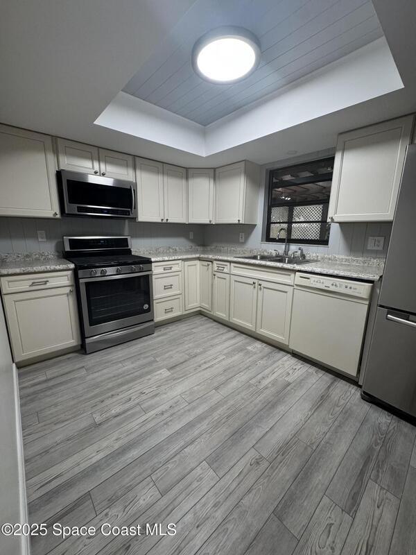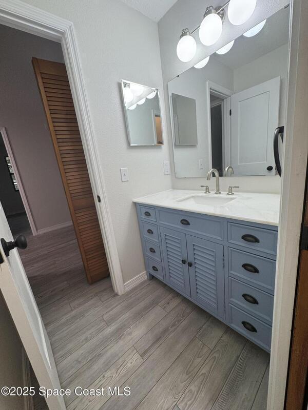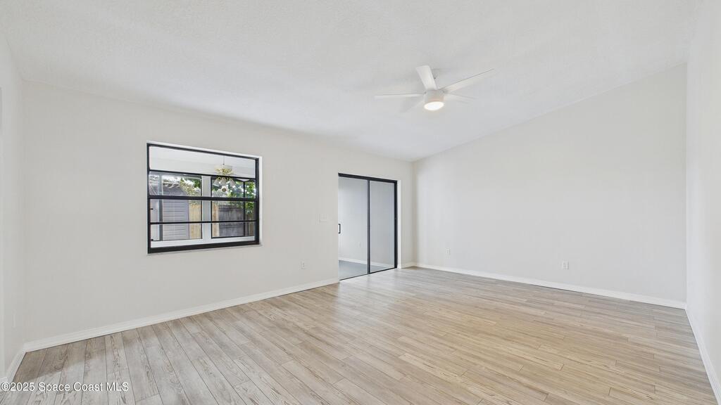 Lender fell thru !!! Completely Remodeled Like New Half Duplex - 2 Bedroom with 2 Gorgeous New FULL Baths. All New Flooring Throughout - Luxury Vinyl, Fresh Light & Bright Painted Inside and Exterior, Newly Stained Concrete on Back Patio and In Garage. Brand New Tankless Water Heater gives Instant Hot Water, Refrigerator, Brand New Dishwasher, Microwave, Stove, Washer & Dryer all Convey with the Property. This adorable home with a Garage has a lushly landscaped fenced yard with Mango Trees, and shrubbed entrance to front door, Entire yard is fenced with lots of room for child play and dogs to run, A Beautiful Recently New Shed with Locking Door is in Back Yard and houses all the Aluminum Shutters that Cover All the Windows which helps with your Insurance, Roof was New in 2019. This Home is a Must See Conveniently located off Murrell which runs between I-95 and US-1 easy commute North to Space Center, East to Space Force Base or South to Palm Bay Corporations.