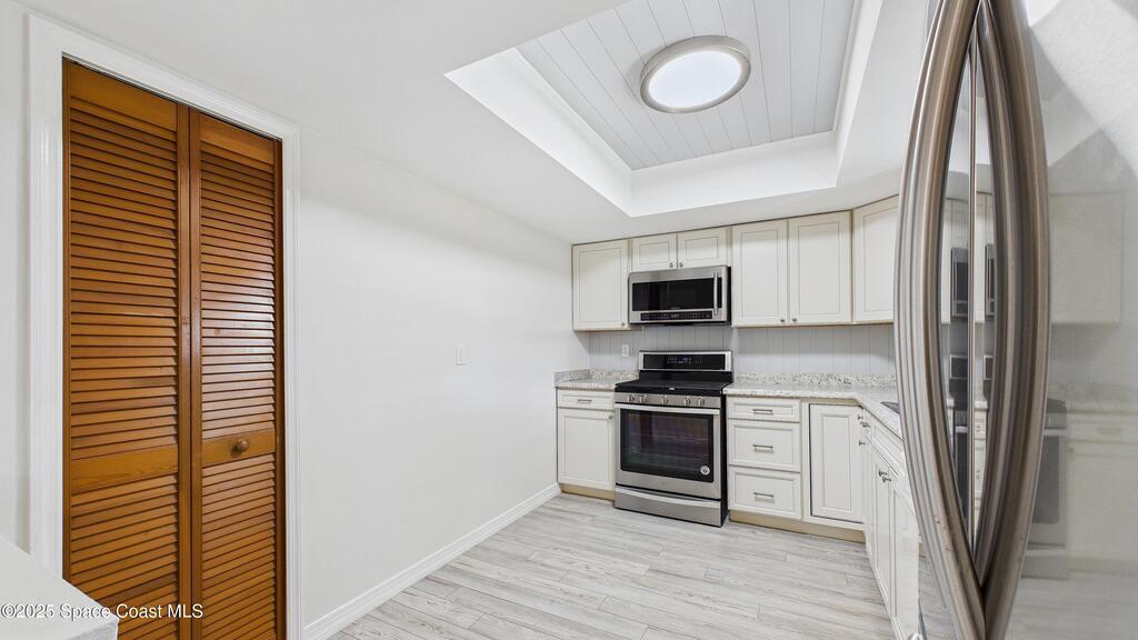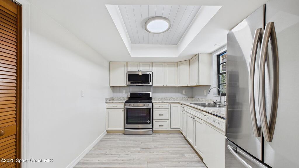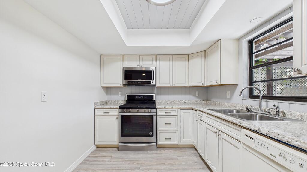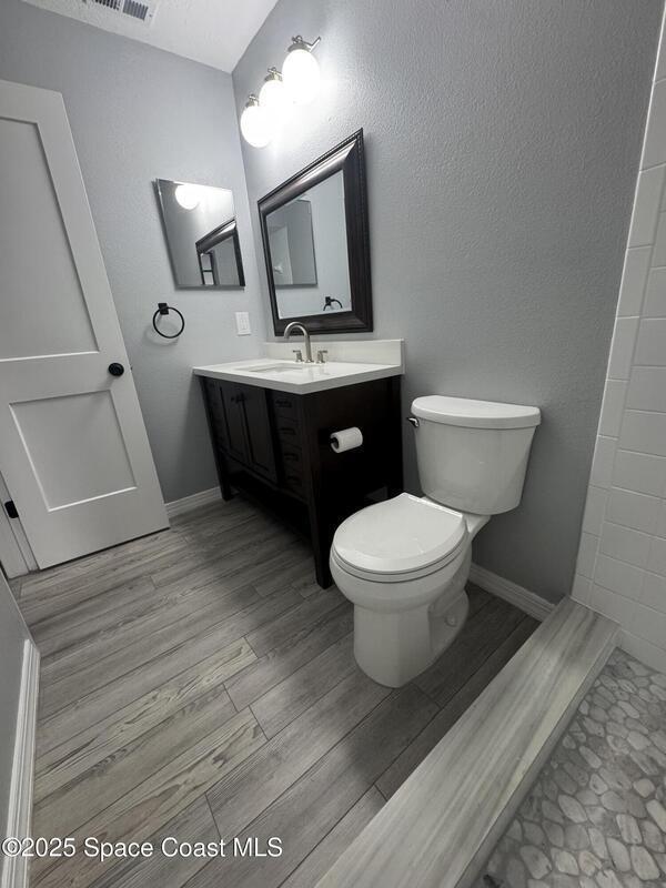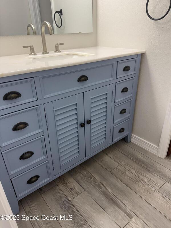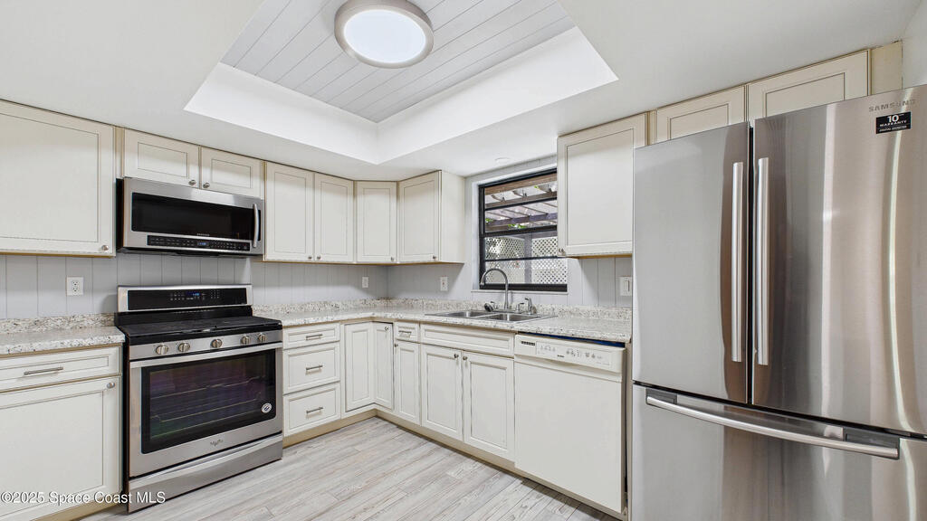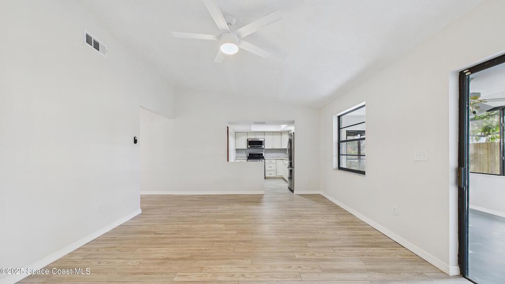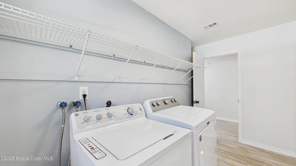 Lender fell thru !!! Completely Remodeled Like New Half Duplex - 2 Bedroom with 2 Gorgeous New FULL Baths. All New Flooring Throughout - Luxury Vinyl, Fresh Light & Bright Painted Inside and Exterior, Newly Stained Concrete on Back Patio and In Garage. Brand New Tankless Water Heater gives Instant Hot Water, Refrigerator, Brand New Dishwasher, Microwave, Stove, Washer & Dryer all Convey with the Property. This adorable home with a Garage has a lushly landscaped fenced yard with Mango Trees, and shrubbed entrance to front door, Entire yard is fenced with lots of room for child play and dogs to run, A Beautiful Recently New Shed with Locking Door is in Back Yard and houses all the Aluminum Shutters that Cover All the Windows which helps with your Insurance, Roof was New in 2019. This Home is a Must See Conveniently located off Murrell which runs between I-95 and US-1 easy commute North to Space Center, East to Space Force Base or South to Palm Bay Corporations.