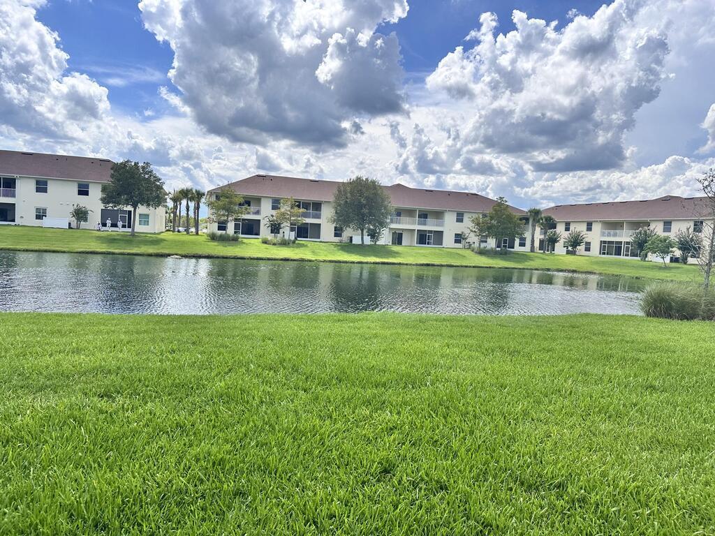 Wonderful water views from the back screened in balcony. Large updated unit on the second floor you'll love to make your home! The unit features 3 bedrooms and a split floor plan. The master bedroom is spacious and features a bathroom with double sinks, an updated shower and a walk in closet. The kitchen is open to the living area and features corian countertops. The unit has neutral paint colors throughout and a spacious open floorplan. The unit comes with an attached one car garage and storm shutters. Enjoy endless days by the community pool! The location is convenient, to the Avenues and the Publix shopping center. Also easy access to the Disney, Orlando airport, Patrick Air Force Base and Cocoa Beach.