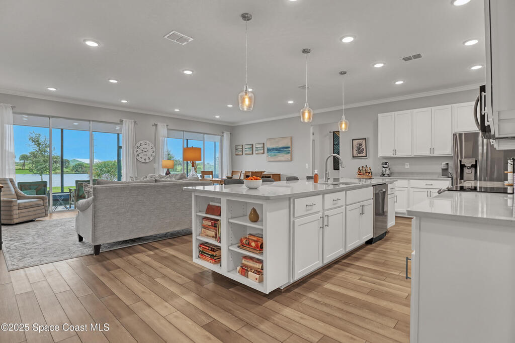 Experience coastal living at its best in this 2022-built waterfront home near Sebastian Inlet -- perfect for boating enthusiasts, beach lovers, and multigenerational living. With 4 spacious bedrooms, there's room for family and guests, plus an office/den with French doors for work or creativity. The open great room and 34-foot screened porch invite relaxation with serene water views. High ceilings, upgraded finishes, and a 2-car garage with epoxy floors and a workshop provide both comfort and practicality -- ideal for storing fishing gear, paddleboards, or a golf cart. Located in the Lakes at St. Sebastian Preserve, you're minutes from sandy shores, marinas, and coastal adventures while staying close to daily conveniences. Live the Florida dream -- this backyard offers plenty of space to add your own tropical poolside retreat!
