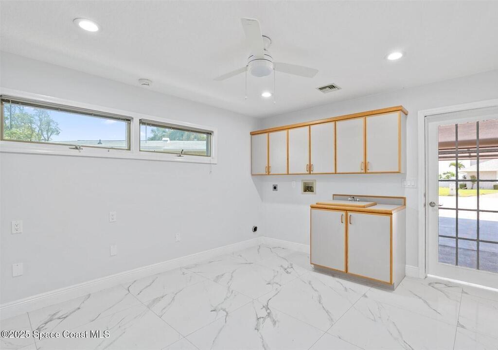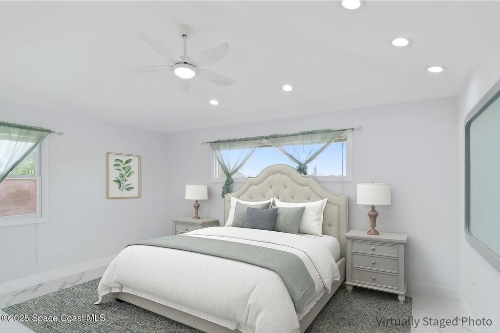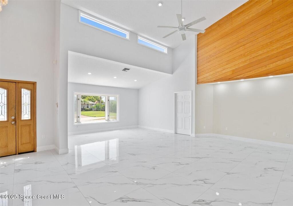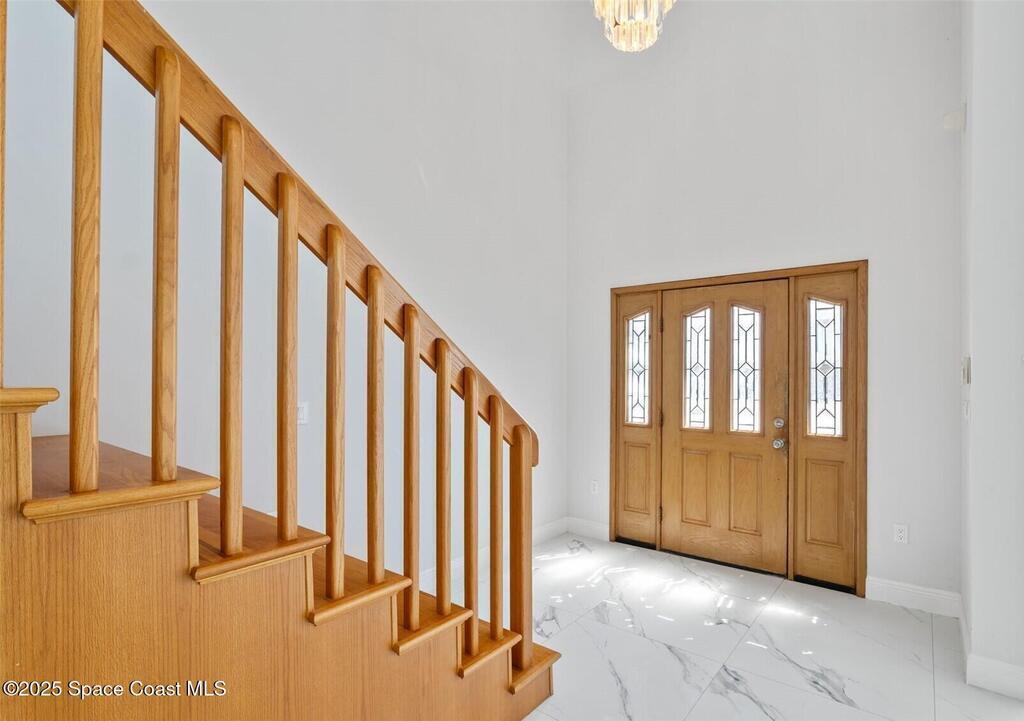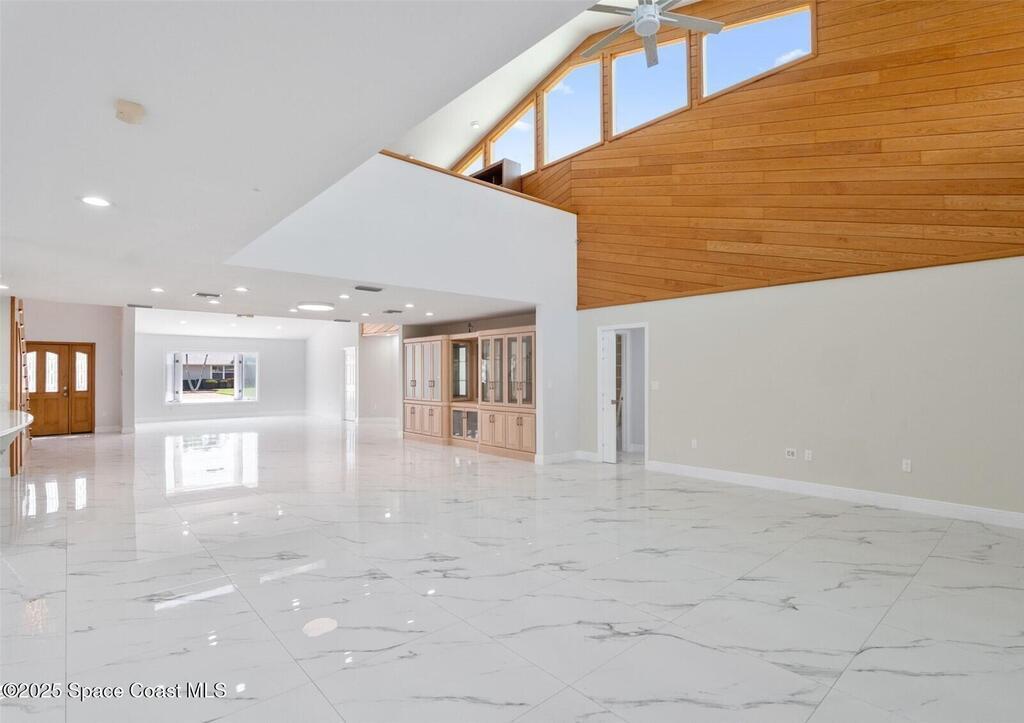 WELCOME HOME TO EXCLUSIVE MILFORD POINT MERRITT ISLAND!An absolute tropical boater's paradise! This stunning canal front single family home offers 5 bedrooms 4 full bathrooms and an open floor plan designed for spacious coastal living. Stunning Kitchen equipped with new stainless appliances. Features include 2 primary suites--one on the first floor and another upstairs with a loft overlooking the main living area, a private balcony overlooking pool and Pelican Creek. One of the downstairs bedrooms is perfect for in-law quarters. The garage is fully equipped custom cabinets and 2 work benches & oversized driveway. Additional highlights include a newer roof, 2 newer HVAC units, two wood-burning fireplaces (one on each level) and an expansive 1,531 sq. ft. dock spanning the full width of the property. Outdoor living at its finest with multiple deck space, a sparkling pool, and a relaxing spa. This property offers direct canal access with no bridges, making it a true boater's dream!