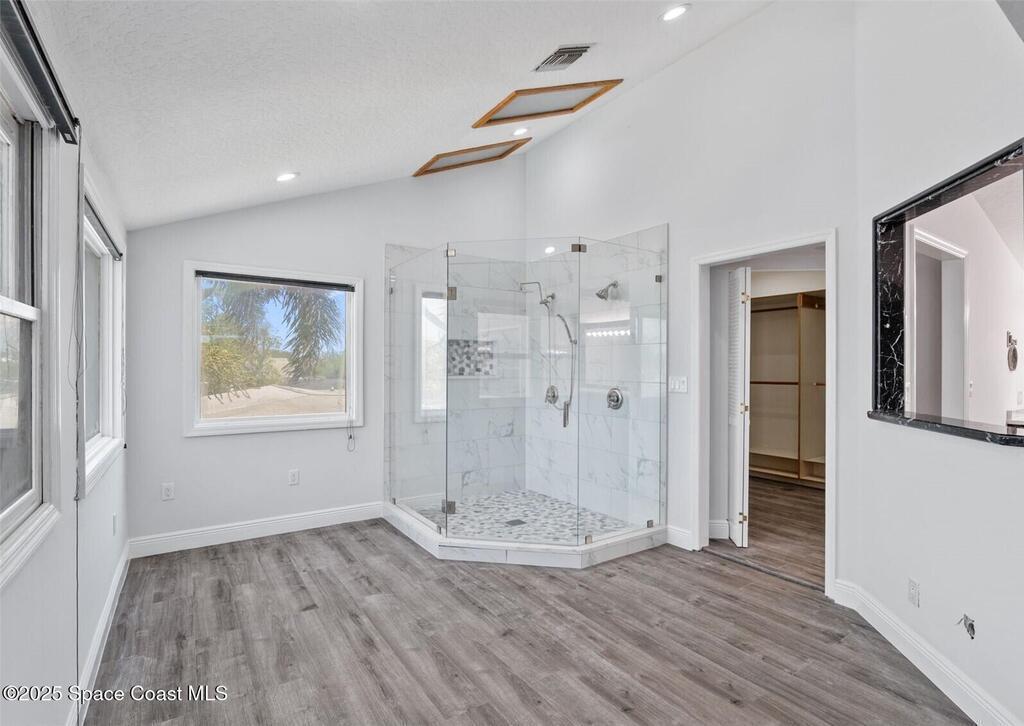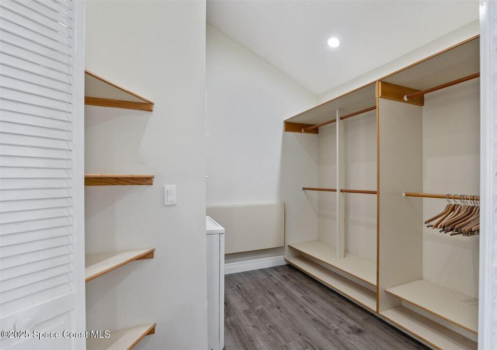 Interior Features: Breakfast Bar, Breakfast Nook, Built-in Features, Ceiling Fan(s), Central Vacuum, Eat-in Kitchen, Entrance Foyer, Guest Suite, His and Hers Closets, In-Law Floorplan, Kitchen Island, Open Floorplan, Pantry, Primary Bathroom - Shower No Tub, Split Bedrooms, Vaulted Ceiling(s) and Walk-In Closet(s)