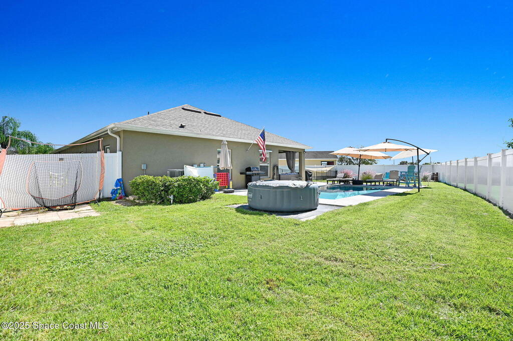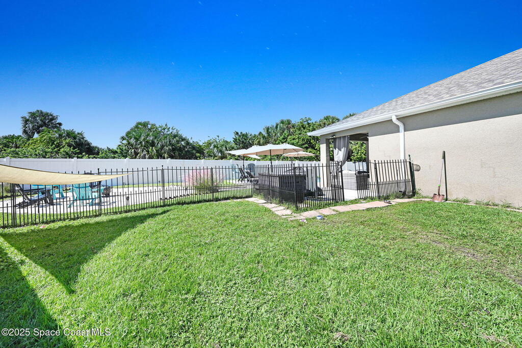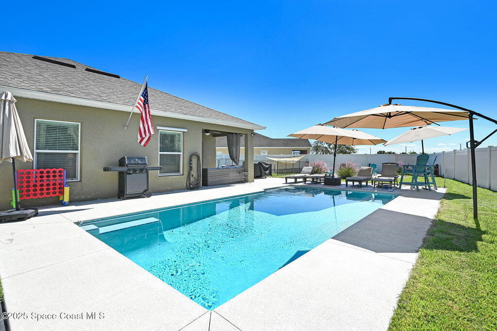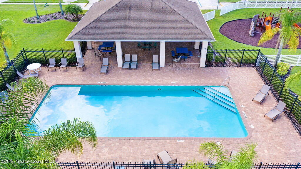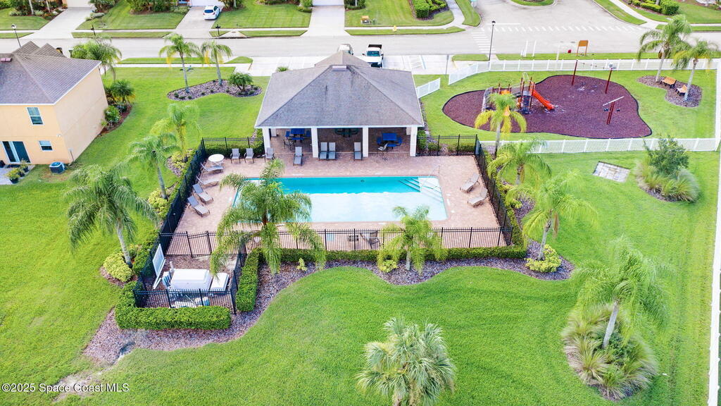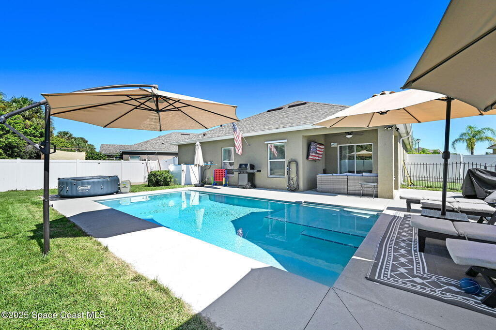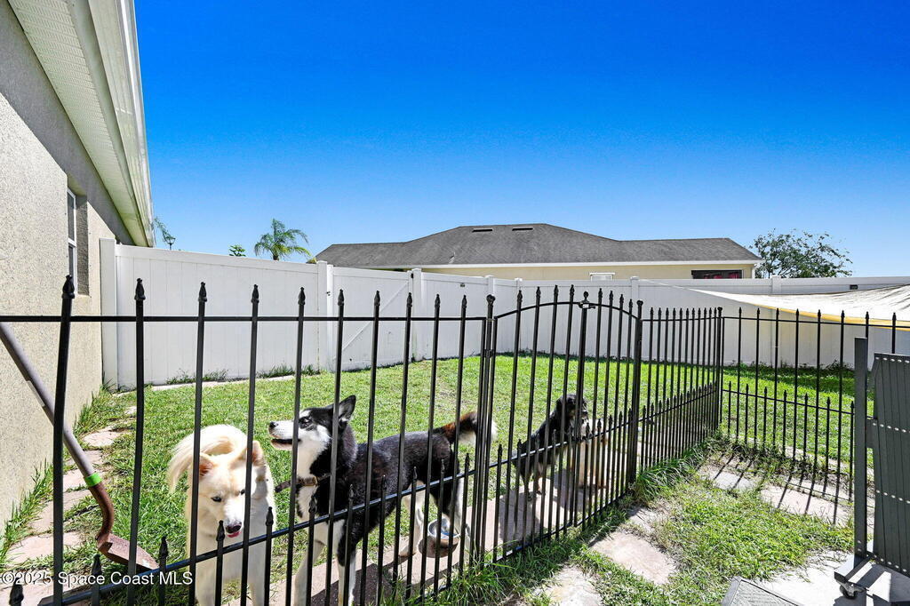 LIVE where others VACATION! Private POOL home on a RARE CORNER pie-shaped lot with NO rear neighbors. Extra green space between the adjacent home for MAXIMUM PRIVACY. RESORT STYLE, fully FENCED backyard OASIS w a NEW SALTWATER POOL, adorable BEACH AREA and even a DOG RUN for your furry family members. Inside are 3 bdr, 2 baths, and a spacious living and dining area. The kitchen is tucked away yet opens to the cozy family room, perfect for entertaining or everyday living. The large primary suite features a tray ceiling and a walk-in closet with built-ins. The primary bath offers double sinks, soaking tub, and separate shower. Prime location in a sought-after GATED Parkside West community near St. Johns Heritage Pkwy and Malabar Rd, close to the new Publix and Fred Poppe Regional Park with dog park, trails, pickleball etc. Only 30 min from our amazing BEACHES. Major updates: Roof 2024, A/C 2022, Pool 2024. THE BACKYARD IS UNFORGETTABLE. ONE LOOK and YOU'LL KNOW IT'S THE ONE!