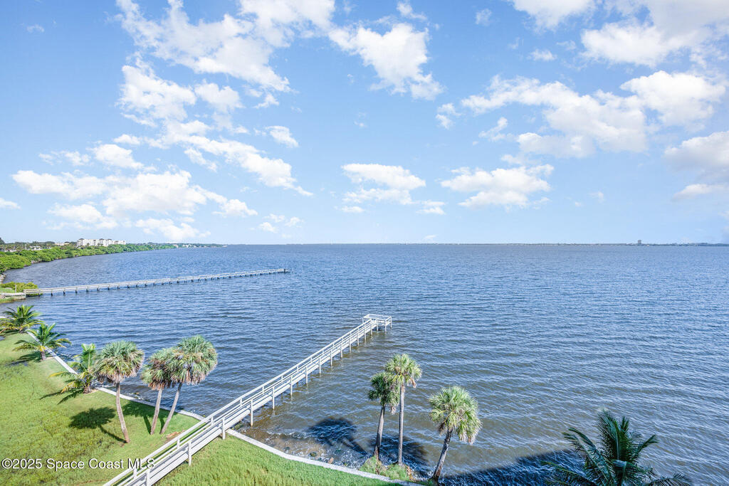 Welcome to your coastal chic condo w/ fabulous direct Indian River views where you will feel like you are on vacation everyday. You will love the open floor plan w/ great room, dining room & kitchen overlooking the river. Huge Kitchen w/ brand new SS appliances & solid surface countertops. Wake up in the primary suite to sweeping river views. Both guest rooms are ensuites so lots of privacy. Large laundry room complete w/ washer & dryer. Step outside onto your private balcony to enjoy coffee or cocktails while soaking in the sounds of the water. Perfect for watching rocket launches, manatees, dolphins, & birds. There is a 1 car garage complete w/ storage locker. There is gated entrance w/ secured lobby w/ 2 new elevators. Also, a riverfront heated pool, ,clubhouse, pier & kayak storage. Close to the Shack Restaurant & Yellow Dog Cafe. Close to D'town Melbourne & 15 min to the beach.