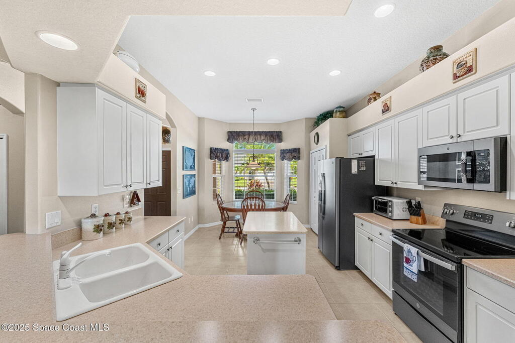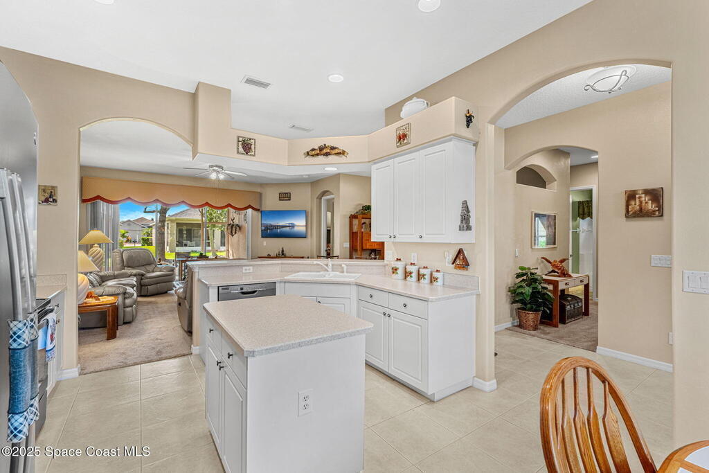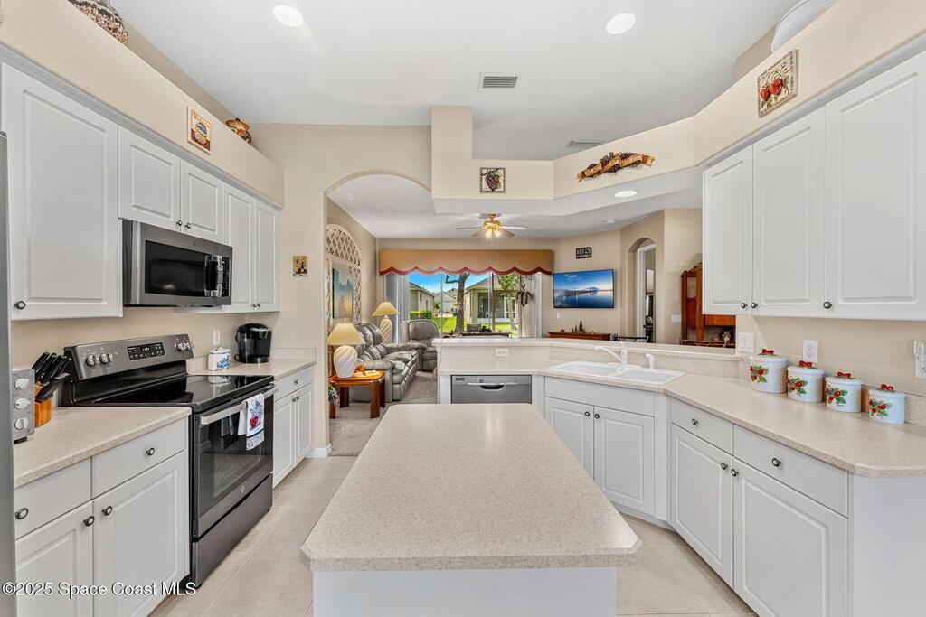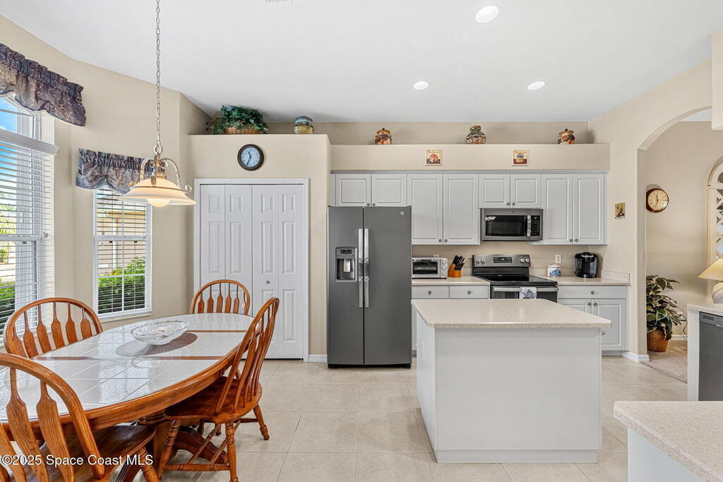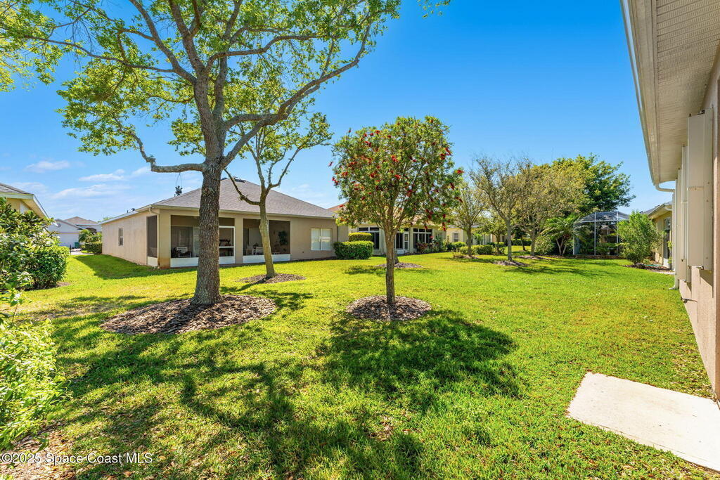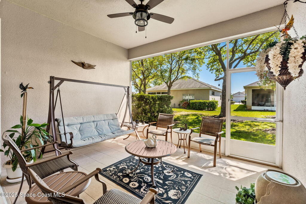Enjoy maintenance-free living in this beautifully maintained 3BD/2BA/2-car garage duplex! Situated within the 24-hour guard-gated Resort Style 55+ community of Heritage Isle, this home features high ceilings, a bright white kitchen w/ SS appliances & island, tray ceiling in the primary bedroom, while the primary bath offers dual sinks, a garden tub, & plus walk-in shower. Additional highlights include a laundry room with extra cabinetry & utility sink, a screened tiled lanai & accordion hurricane shutters on all openings. Major updates include: Roof (2020), HVAC (2018), and Water Heater (2018). The HOA of $1,127/quarter covers all exterior maintenance, exterior insurance, and roof replacement. Enjoy an active and social lifestyle with a 21,000 sq. ft. clubhouse, cafe & a full activity calendar. Amenities include tennis, pickleball, a heated pool, spa, gym & more! Conveniently located near an array of shopping, dining, golf & healthcare facilities in the heart of Viera.