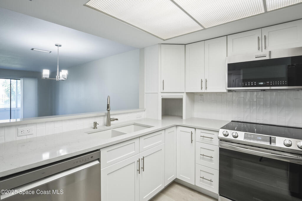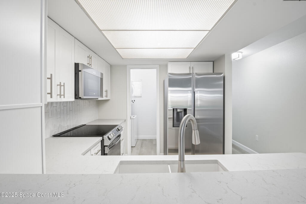 One or more photo(s) has been virtually staged. Fully renovated and move-in ready in Royal Colony! This 2-bed, 1.5-bath condo showcases over $70,000 in quality upgrades, including luxury vinyl plank flooring throughout and a modern kitchen with quartz countertops, porcelain tile backsplash, and high-end appliances. All brand-new 2024 appliances are covered under a 6-year transferable warranty. Both bathrooms feature porcelain tile and a walk-in shower, while the primary bedroom offers a custom built-in closet. Additional updates include a new roof and water heater (2017) and a dedicated laundry room with a double-stack washer/dryer and extra storage. Enjoy a spacious enclosed sunroom overlooking the pool. Ideal for investors, first-time buyers, or snowbirds. Conveniently located near State Route 50, Kennedy Space Center, and Florida's East Coast beaches. Easy to show!