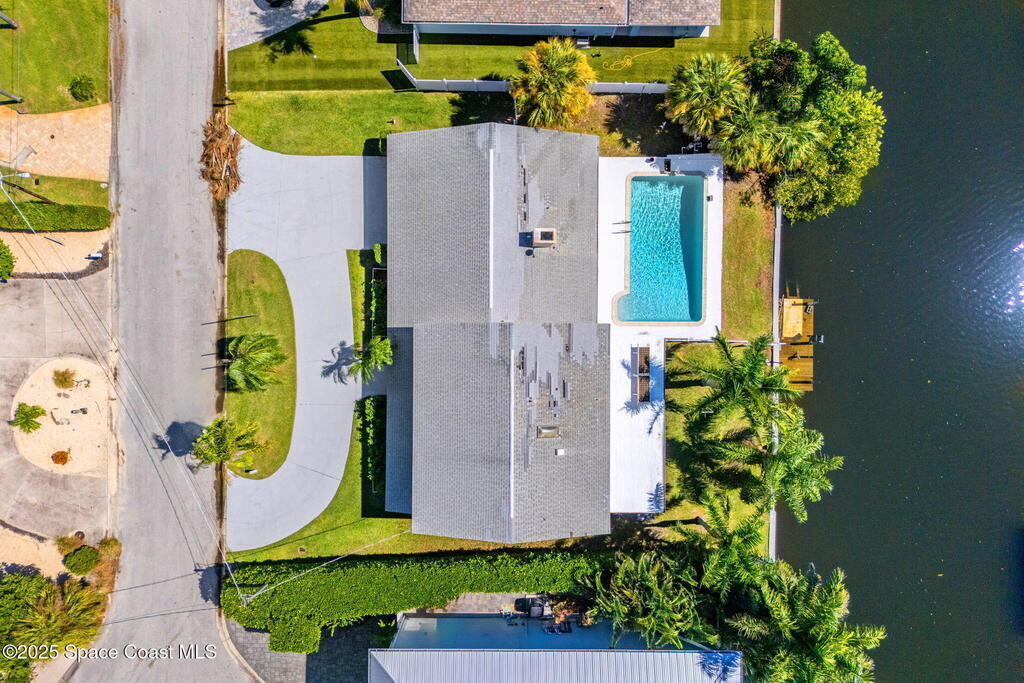 Welcome to your coastal retreat in the heart of Satellite Beach, where limited canal-front homes remain available to buy. This expansive two-story home offers the perfect blend of indoor comfort and outdoor Florida living -- just minutes from the beach, Samson's Island, and top-rated local schools.Step outside to your private backyard oasis, featuring a sparkling pool, covered patio, dock, and direct canal access for boating and fishing -- all with tranquil views of Samson's Island just across the water. Whether you're entertaining guests, casting a line at sunset, or cruising out to the river, this home delivers the ultimate waterfront lifestyle.Inside, discover five spacious bedrooms and strong, timeless bones, ready for your personal design vision. Recently updated with a new AC system, carpet, and exterior paint. Bring your imagination and create the home of your dreams, transforming this home into a true modern masterpiece.
