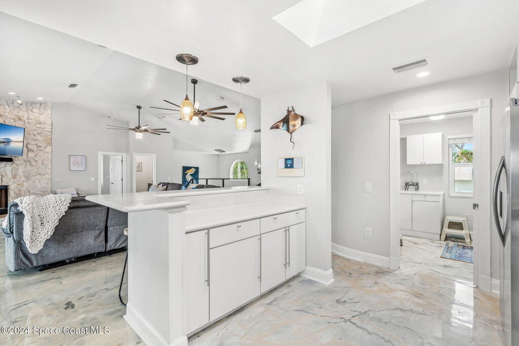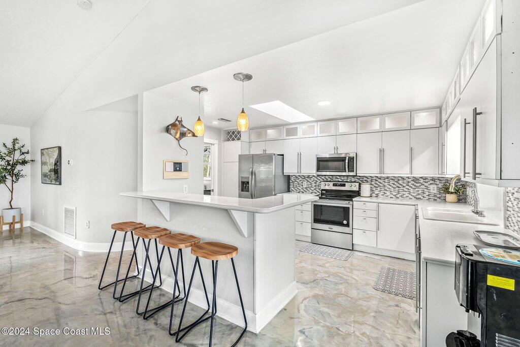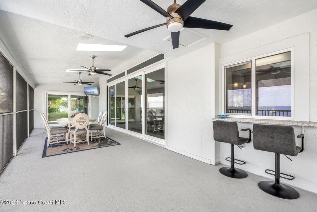 This ''Old Florida'' Riverfront Estate with pool and boat dock/lift is located 2 miles south of NASA Cswy offering direct water and rocket launch views....and both a 3-Car Attached Garage PLUS a 6-Car detached garage! Nestled on a private gated road directly on the river, it was built in 1986 with 4 bedrooms and 3.5 baths, and rests on .68 acres. There is a TON of living space both inside and out with a generous 3016 sq ft under air and 4776 sq ft under roof and over a 3-4 ft elevation. The home is exceptionally well-cared for with the prior two owners being general contractors. Level one is centered around a shared living space surrounded by three bedrooms and two full baths and opens to an absolutely magnificent 648 sq ft screened in patio (54'L x 12'D) overlooking the oversized natural-bottom heated pool and a generous 125' of direct Indian Riverfront. This truly is an entertainer's dream with an outdoor wet bar, and a fisherman's dream with your 300' private dock and boathouse.