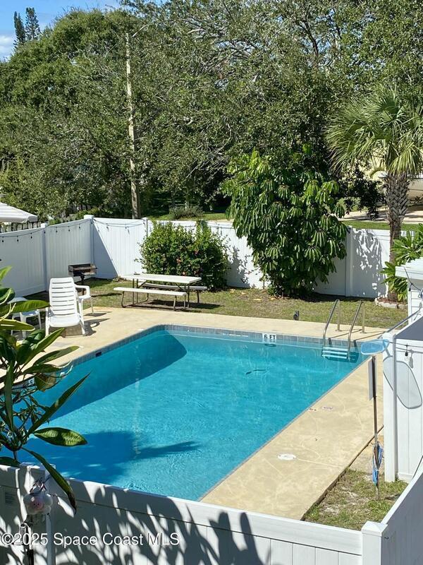 Beachside living opportunity at a budget friendly price. This small and well-kept charming complex has a large community pool and the complex has been recently repainted. Just .4 miles from the beach access and .7 miles from Cherie Down Park. The unit features 2 generous sized bedrooms and 2 full baths. Newer appliances including water heater will remain for the new owners. Open floor plan with lots of natural light. Large screened-in balcony overlooking lush landscape! Perfect for full-time residents, second home for vacationers, or could be great as an investment generating generous monthly rental income. Great location. Just 1 hour to Orlando Airport, central Florida theme parks Disney/Universal/IOA), Kennedy Space Center, and much more! Pets are allowed with some restrictions, recommend verifying with COA contact. New owner will have the opportunity to put their personal touch on this little gem. Do not miss out on your opportunity to own this affordable piece of paradise.