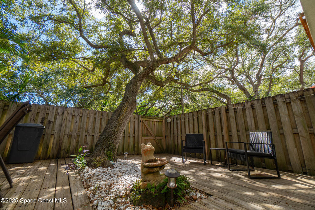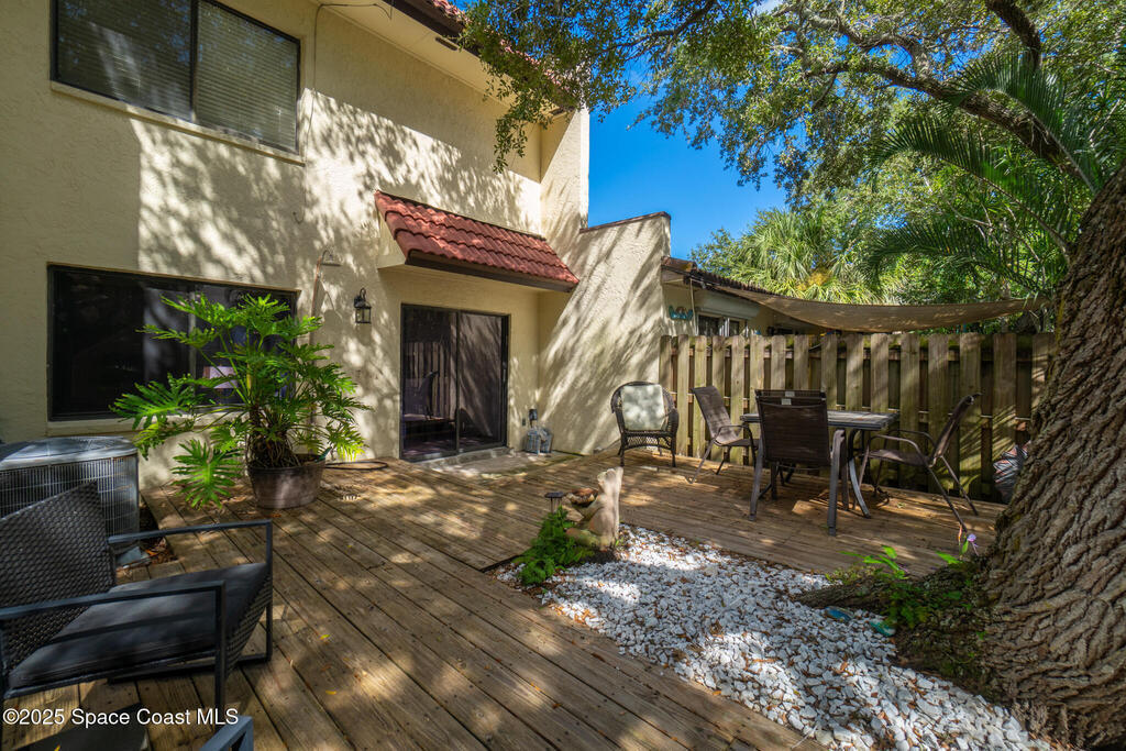 Perfect beachside getaway! This 2BR, 2.5 Bathroom townhouse is in the gated community of Ocean Woods. Easy care Townhouse with tile floor and laminate floors downstairs and engineered hardwood and tile floors upstairs. First floor has half bath, spacious kitchen, LR and eat-in kitchen and patio doors that lead to a large wood deck with beautiful oak trees perfect for entertaining. There is a fire pit, outdoor shower and accent lighting resulting in the back patio even more inviting and special. Upstairs you will find two bedrooms, 2 baths and a washer and dryer conveniently located between the two bedrooms. New roof in 2014, flat roof in 2019. 2.5 ton A/C from 2014 and new electrical panel with surge protection in 2016. This community has so much to offer from pickleball, tennis, two swimming pools (one for adults only), beach access, clubhouse, racquetball and a sauna. Come check it out!