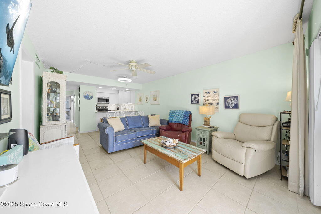 Gorgeous, updated ground-floor condo in the desirable oceanfront Sand Pebbles community! Live like you're on vacation every day in this clean, spacious 2-bed/2-bath condo! Features include; newer tile flooring throughout, a 2021 remodeled, redesigned kitchen with granite counters, tile backsplash, white cabinets, and stainless appliances. Enjoy a BRAND NEW HVAC, newer water heater, and newer metal building roof. The spacious bedrooms include a primary with a huge walk-in closet; both baths updated, one with a tub. Savor coffee or cocktails on your patio, listening to the waves crash, watching rocket launches, or relaxing at the beach or pristine community pool. Monthly rentals allowed in this quiet, well-maintained 30-unit oceanfront complex. Prime location near Cocoa Beach Pier, Port Canaveral, restaurants, and 40 min to OIA/theme parks!
