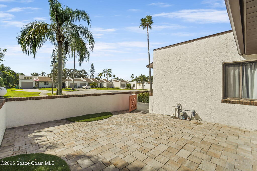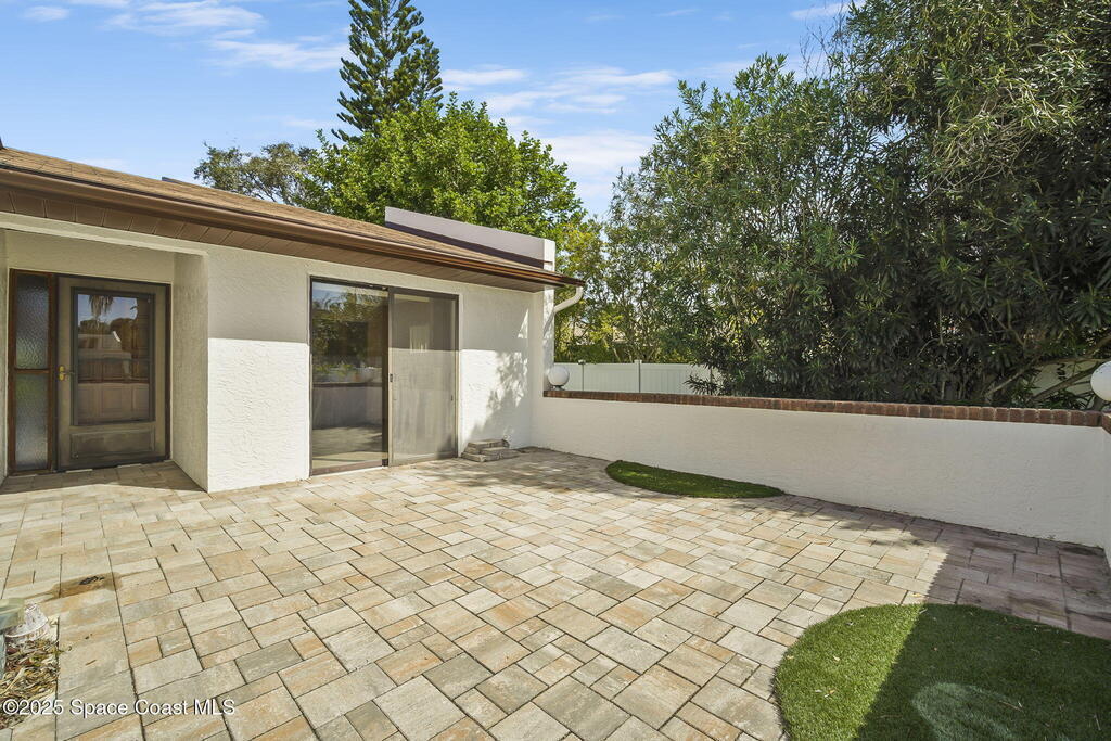 Peaceful 2BR/2BA end-unit townhome in desirable Indian Harbour Beach, ideally located off South Patrick Drive with quick access to A1A and Eau Gallie Blvd. Walk or bike to the beach, local parks, shopping, and dining. The community pool offers a relaxing retreat for year-round enjoyment. The interior has been freshly painted with a newer A/C system and water heater, flat roof recoated in 2024. Enjoy a private paver courtyard, double-wide driveway, and quiet end-unit setting for extra privacy. Top-rated schools and just minutes from Patrick Space Force Base, this townhome offers comfort, convenience, and true coastal living in one of Brevard's most sought-after neighborhoods.