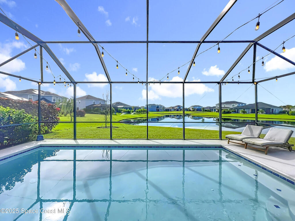 This lakefront pool home in the heart of Viera is located in Sierra Cove just less than 1 mile from I-95 and a part of Brevard's Premier School District. This sprawling 5 bedroom 4.5 bathroom lakefront pool home is loaded with extra's. Boasting a gourmet kitchen with a gas stove, impact windows, plantation shutters, built in wall units, reverse osmosis water filtration system, exterior termite protection, security system, google home and smart home wired. Includes a 3 car garage to accommodate your golf cart. The outdoor living has an inviting inground screened pool with a very large deck over looking a winding pond. This golf cart community includes a resort style swimming pool and children's pool, Tennis, Pickleball and Basketball courts, children's park, dog park and a large activity center. This home is truly turnkey