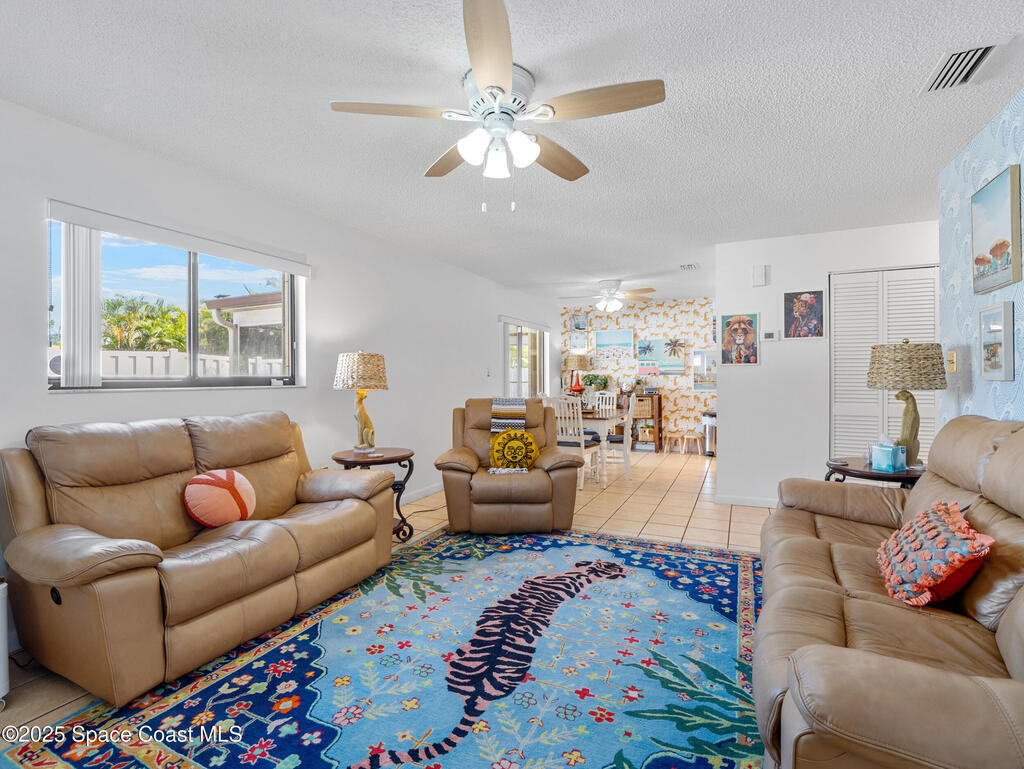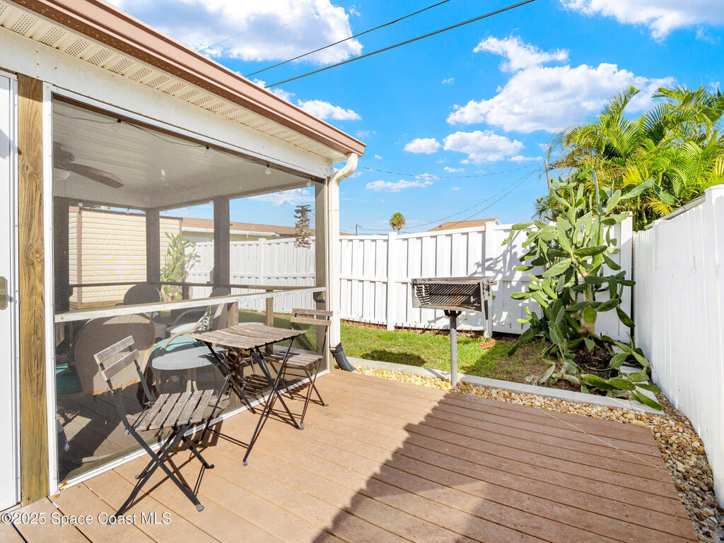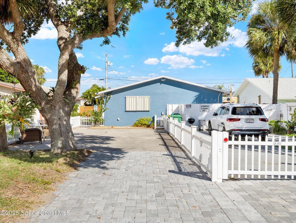 Highly sought after one-story beachside 1/2 duplex just steps to the beach, with NO HOA! Whether you're looking for investment or just your own private getaway, this is it! A stunning kitchen with soft close cabinetry, Curava Seaglass countertops, SS/appliances, updated baths, tile floors in main areas, accordion hurricane shutters, fully fenced private back yard, 2023 A/C & newer storage shed. Screened in porch to enjoy the breeze and plenty of space to entertain. Great location convenient to Beaches, Space Center, Port Canaveral, Cocoa Beach Peir, shops, restaurants, and only 45 minutes to Orlando. Move in ready & furnishings are optional.