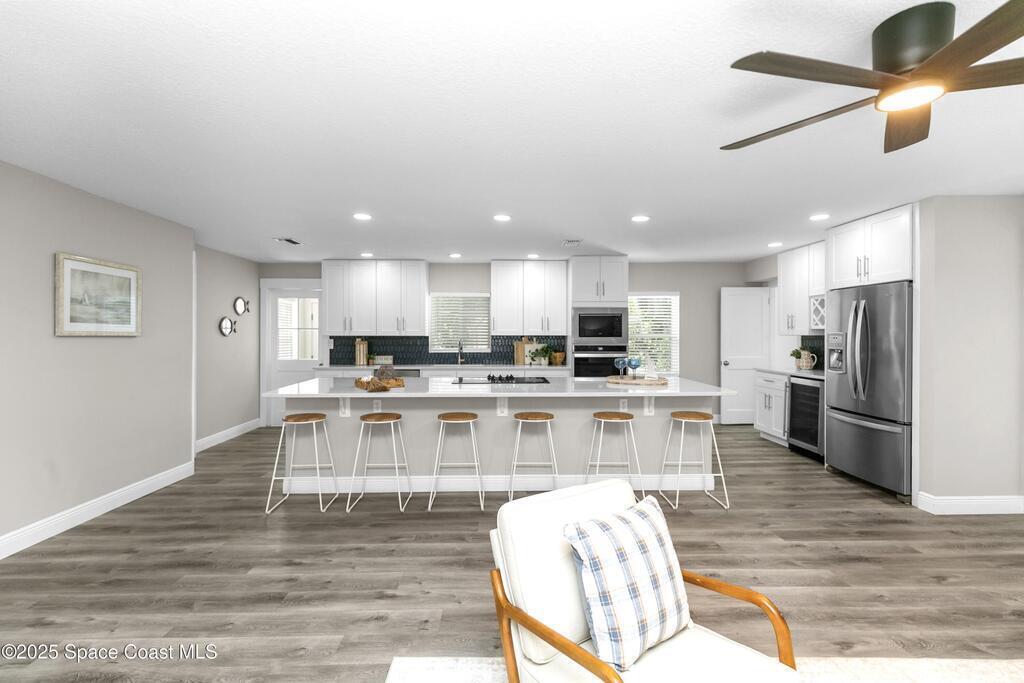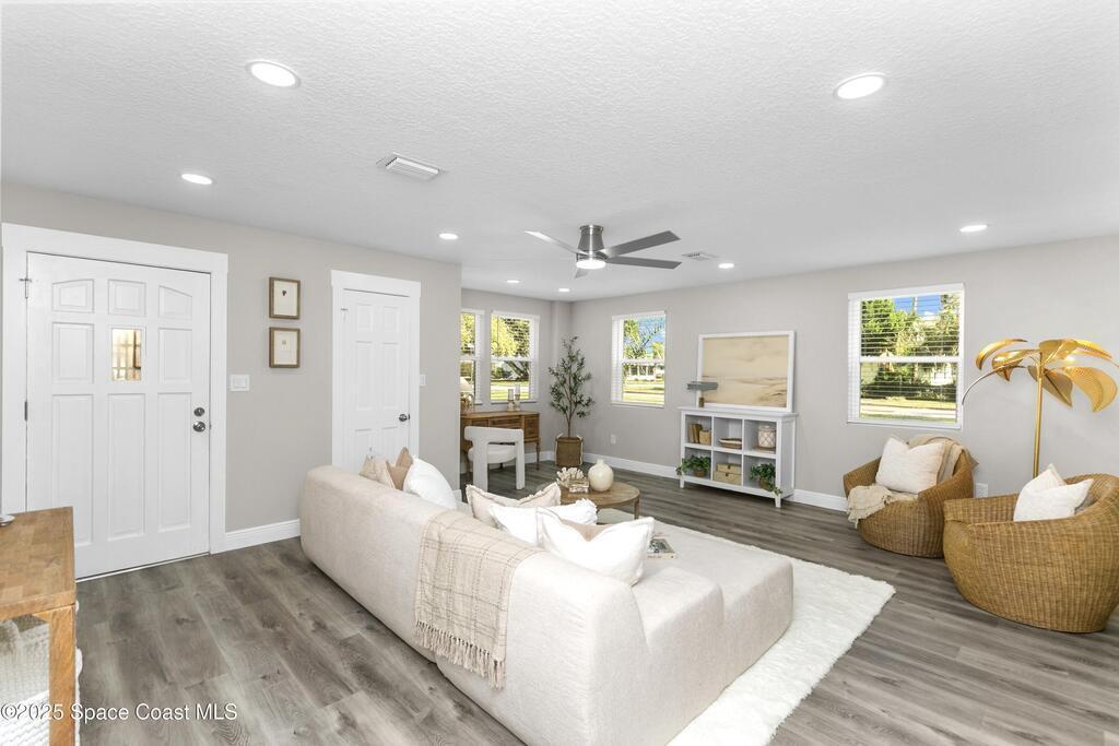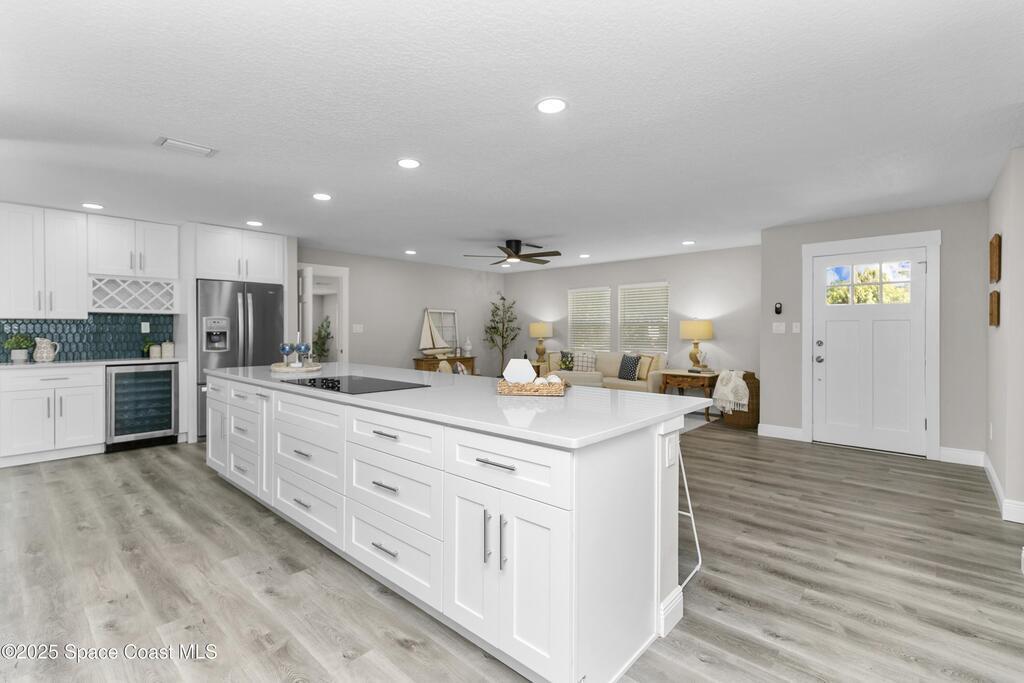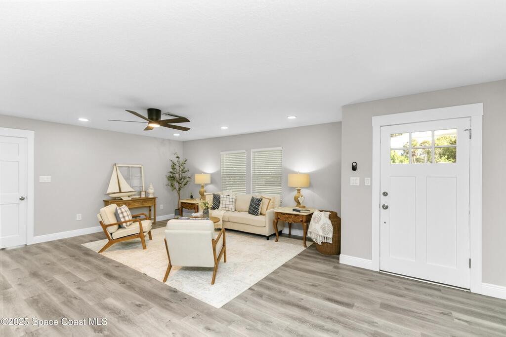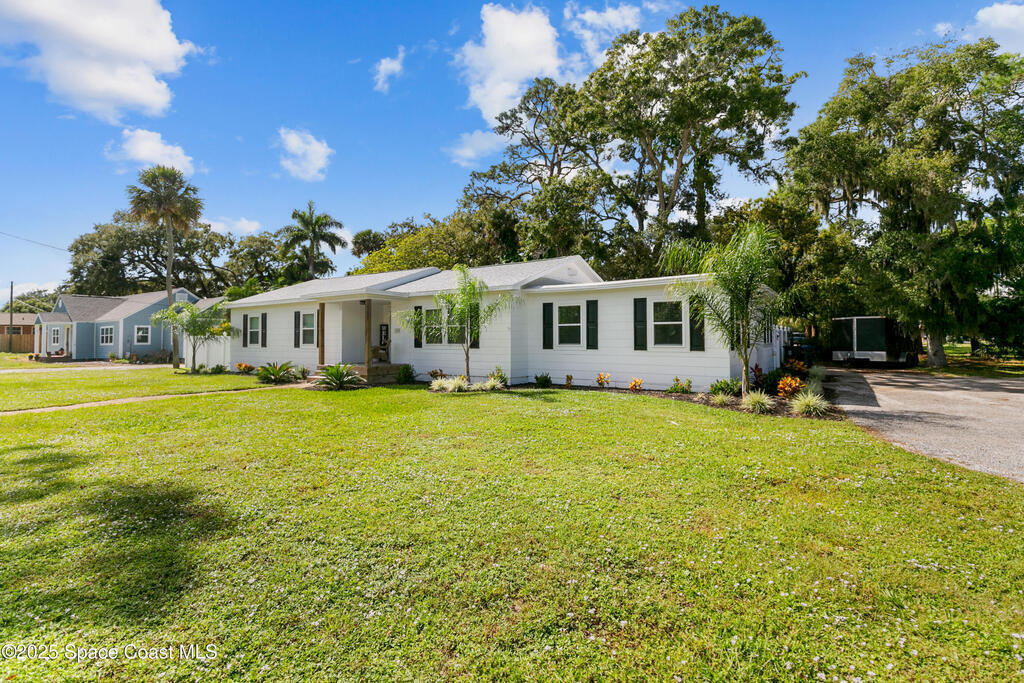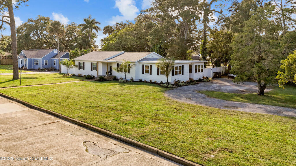 Completely renovated with care & craftsmanship! This charming home has been beautifully reimagined from top to bottom, offering modern comfort just steps from the Indian River and downtown Titusville. Major updates include a new roof, electrical panel with full rewiring, & new air conditioning with heat pump -- all completed in 2024. Inside, you'll find new double-pane vinyl windows, wood cabinets, quartz countertops, and stainless steel appliances (plus a wine fridge!). The baths have been fully remodeled, and the home features new vinyl plank flooring, drywall with orange peel texture, fresh ceiling finishes, new fans, lights, and blinds throughout. Insulation has been upgraded inside & out for efficiency, including new exterior wall batten insulation & blow-in attic insulation. Outside, enjoy a powered shed. With every detail thoughtfully updated, this home combines vintage charm with worry-free modern living.Situated on a spacious corner 0.45-acre lot, this property offers plenty