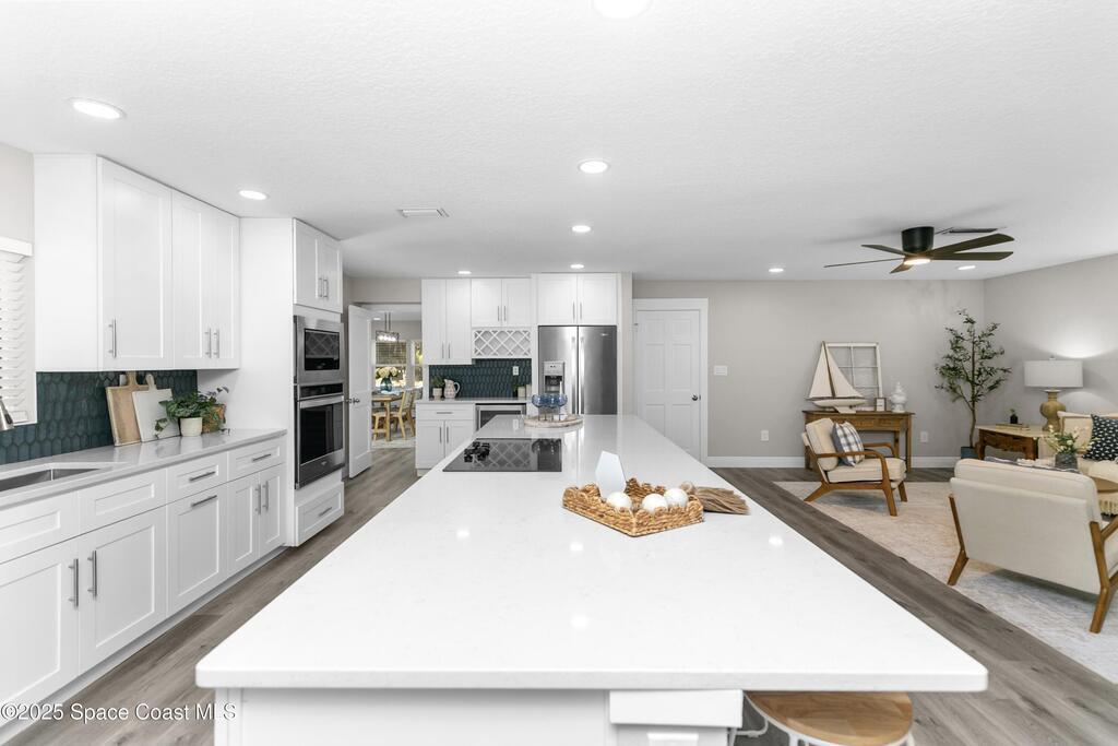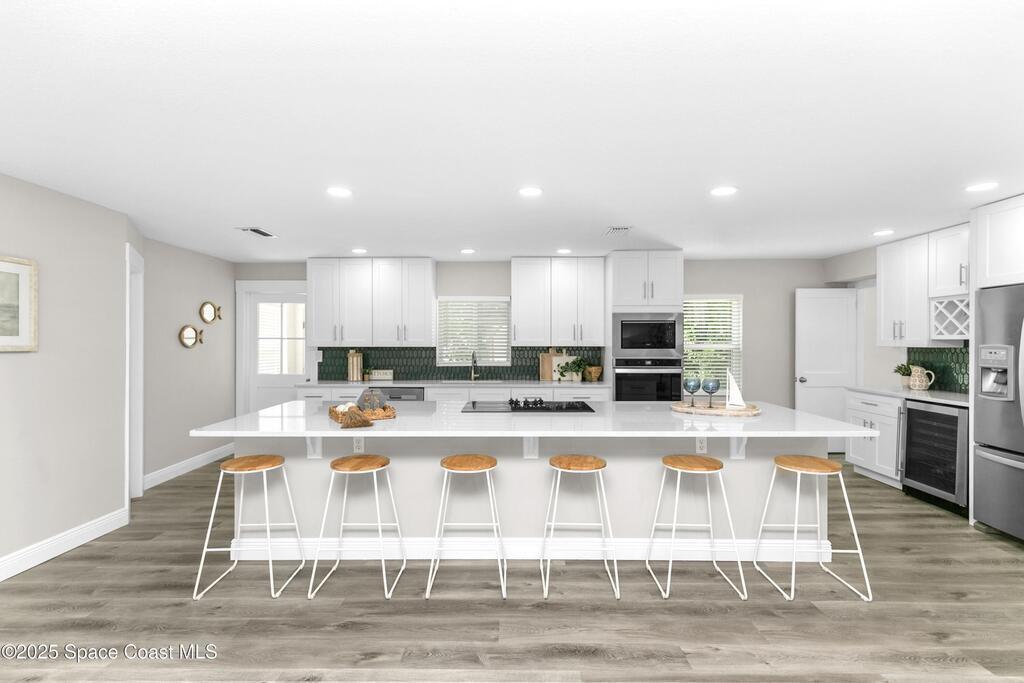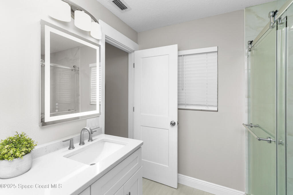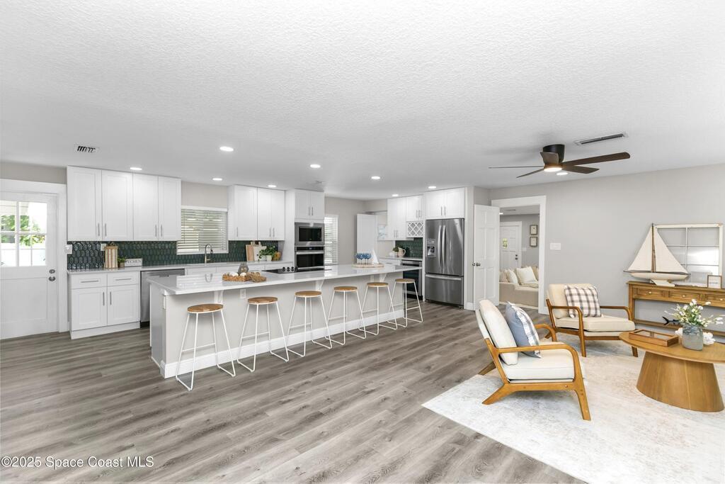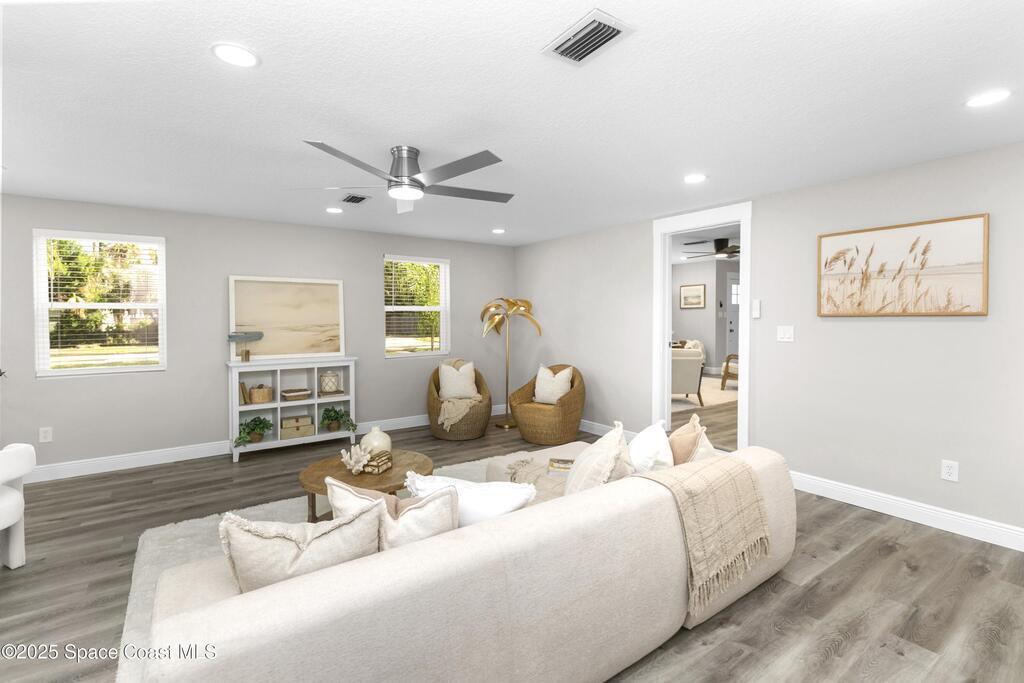 Completely renovated with care & craftsmanship! This charming home has been beautifully reimagined from top to bottom, offering modern comfort just steps from the Indian River and downtown Titusville. Major updates include a new roof, electrical panel with full rewiring, & new air conditioning with heat pump -- all completed in 2024. Inside, you'll find new double-pane vinyl windows, wood cabinets, quartz countertops, and stainless steel appliances (plus a wine fridge!). The baths have been fully remodeled, and the home features new vinyl plank flooring, drywall with orange peel texture, fresh ceiling finishes, new fans, lights, and blinds throughout. Insulation has been upgraded inside & out for efficiency, including new exterior wall batten insulation & blow-in attic insulation. Outside, enjoy a powered shed. With every detail thoughtfully updated, this home combines vintage charm with worry-free modern living.Situated on a spacious corner 0.45-acre lot, this property offers plenty