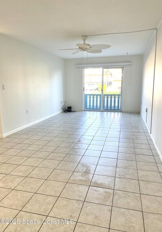 Bright and airy first floor condo just one block to the ocean! Perfectly situated in between the Cocoa Beach Pier (1 mile away) and Port Canaveral. You can't beat this location! The Ocean Park complex is exceptionally maintained and offers a swimming pool, laundry room, bike parking, and picnic area. This charming condo has many upgrades.The air conditioner is only one year old and the hot water heater was replaced two years ago. It's easy to access the beach from the large sliding doors leading out to a private patio. The living room is bright and open and the bathroom was remodeled only a few years ago. Association fee includes trash, water, internet, and cable. One assigned parking spot, and guest parking available. Owner is selling agent.