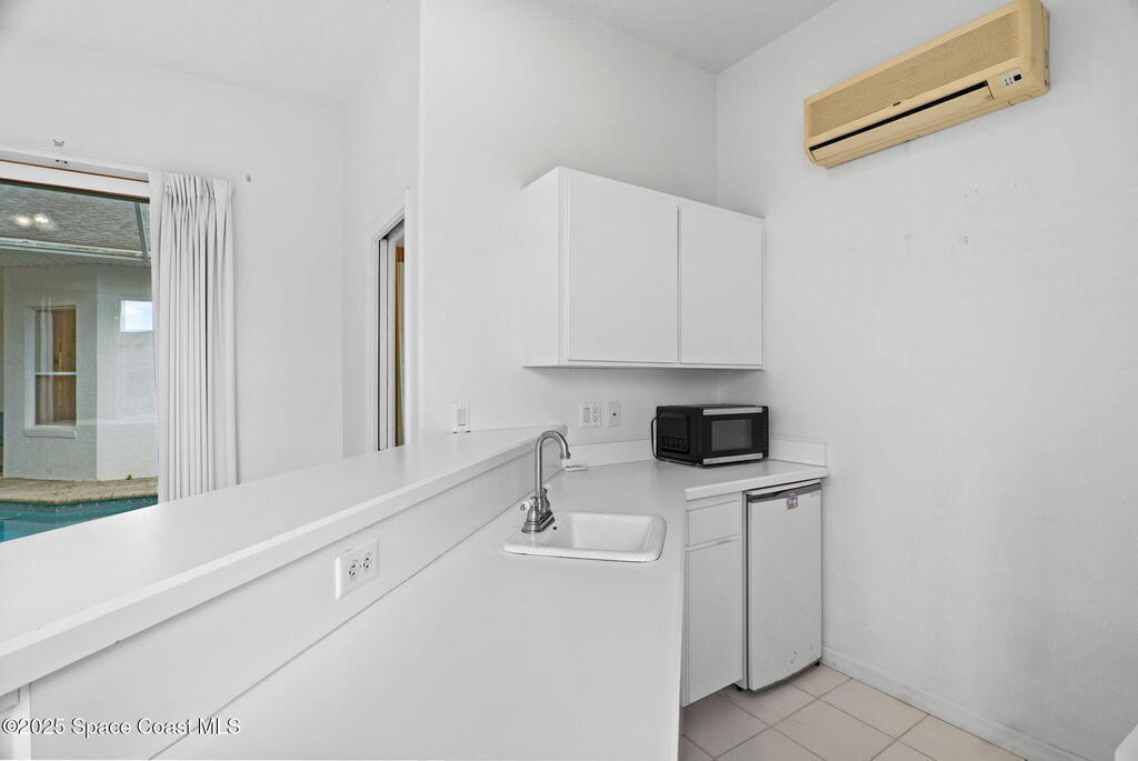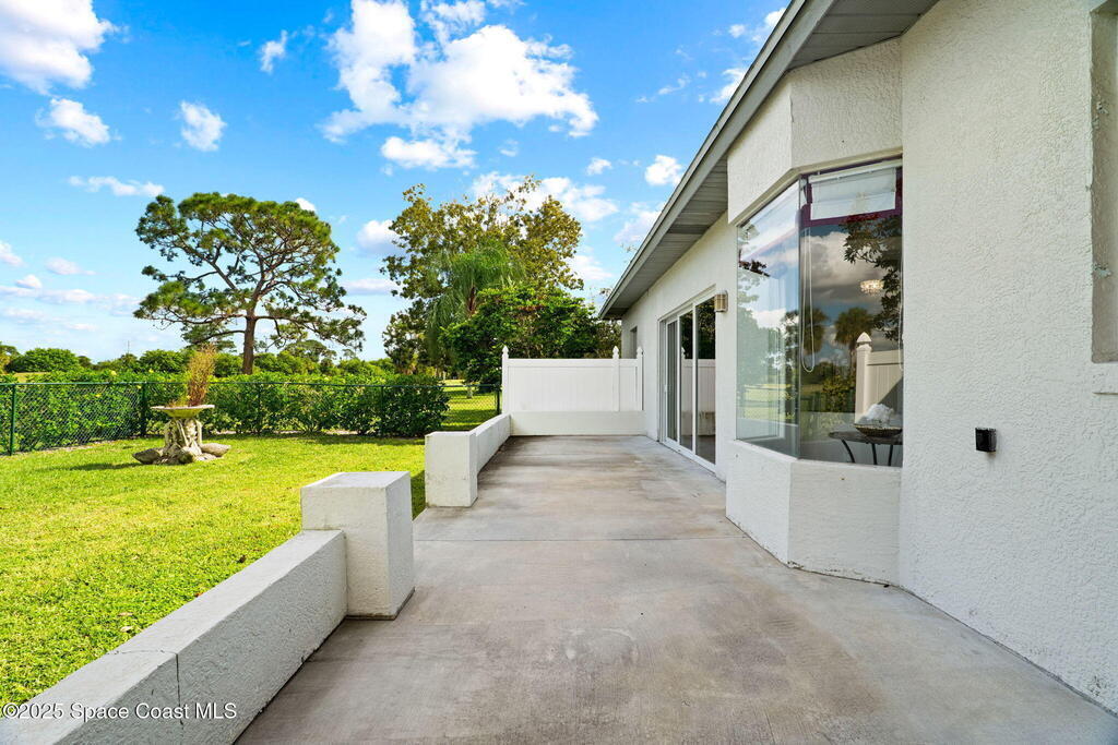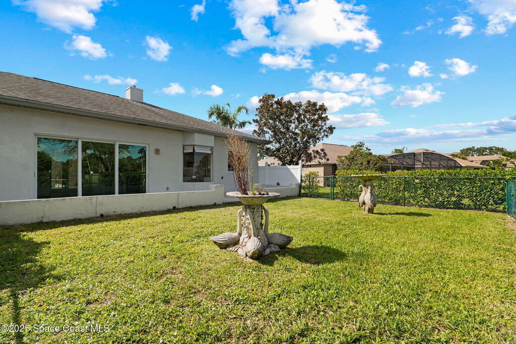 This home is located on a beautiful 18-hole course with a friendly clubhouse that serves food and drinks. Bar also has weekly Texas Hold'em, darts, trivia and other community activities. NO FLOOD INSURANCE IS REQUIRED FOR THIS PROPERTY! In addition, it has an enclosed INDOOR HEATED POOL that ensures complete privacy. There is also a hot tub that waterfalls into the pool. The pool house can serve as a fourth bedroom with half bath and poolside shower. The master bedroom boasts a spacious bathroom with two walk-in closets. Both living room and kitchen are spacious with window treatments and appliances. There is a two sided gas fireplace facing the living room and dining room. Space coast GC is one of the few golf courses in Florida that allows a fenced back yard. The backyard is fenced in and surrounded by Hibiscus bushes with beautiful unobstructed views. Golf course is currently doing a $4,000,000 upgrade. All dog breeds accepted! Cocoa Beach and Port Canaveral are just minutes away