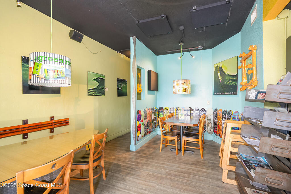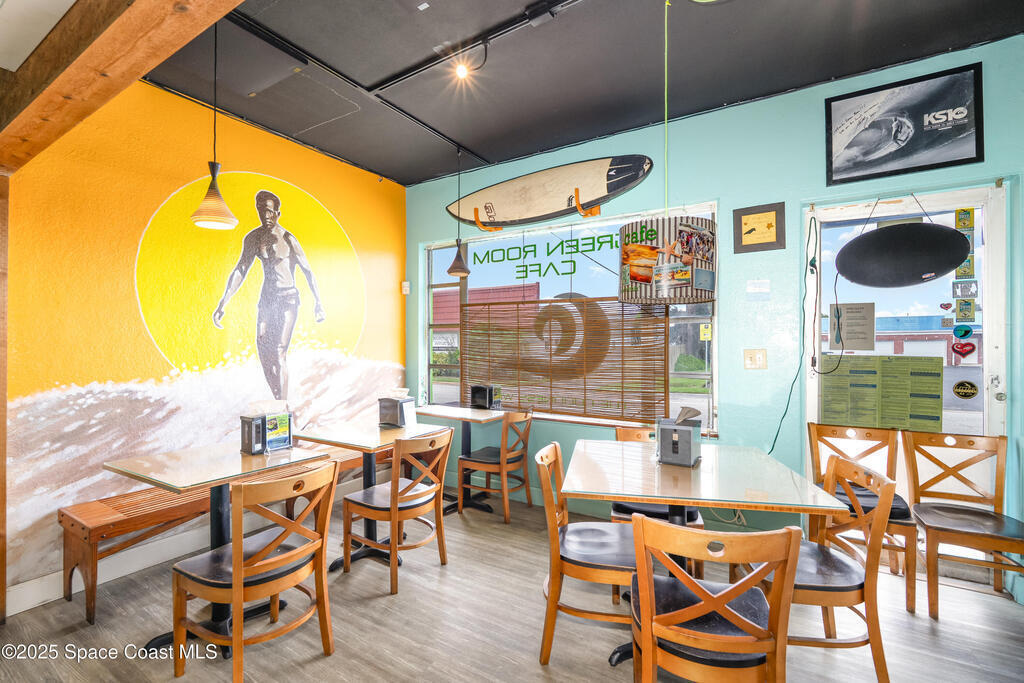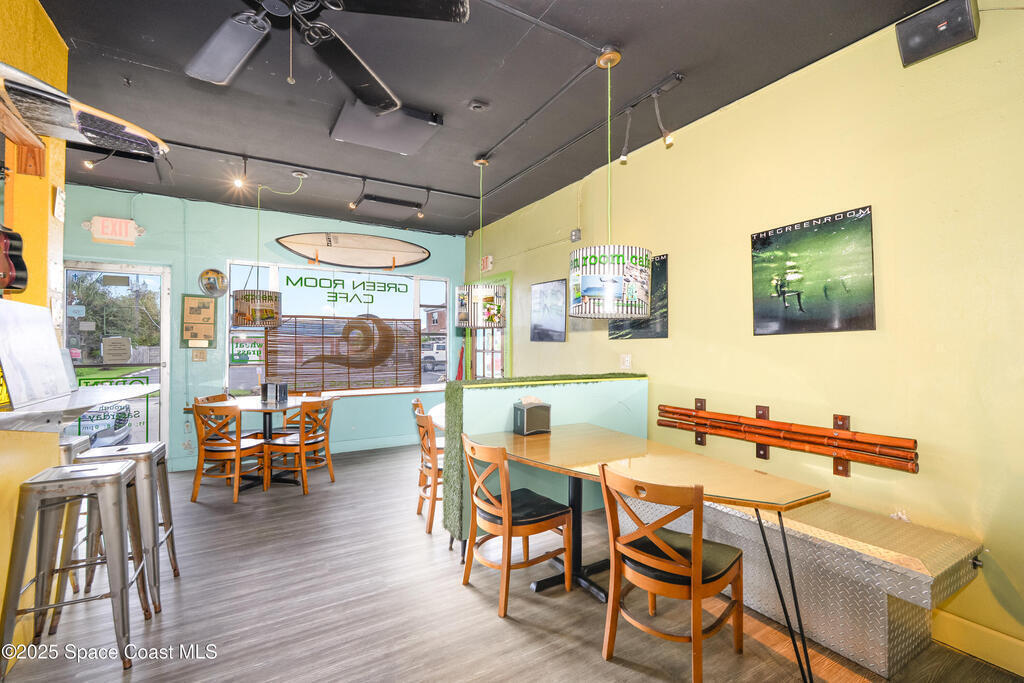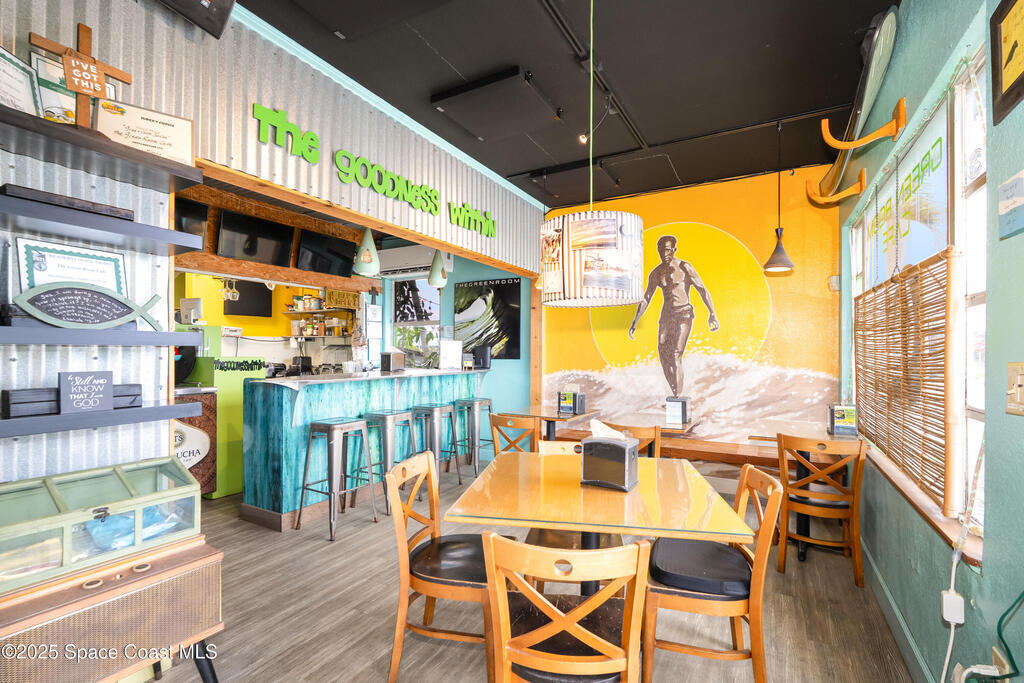 Positioned in the downtown Cocoa Beach redevelopment center in one of Florida's most desirable coastal business corridors, this iconic location offers exceptional visibility, convenience, & plenty of parking. The 1,133 SF interior is filled with natural light & currently operates as a restaurant; all furniture & equipment convey. A shady outdoor seating area with a convenient pass-through window adds appeal for cafe or casual dining concepts. Ideal for continued use as a restaurant or conversion to other mixed-use commercial options. Located just blocks from the Ocean in the booming Space Coast market, this is an excellent opportunity to jump in on the explosive growth happening in Brevard County. This well maintained commercial condo features a 2019 Roof. Units A & B are also for sale (inquire for details). Business is not for sale.