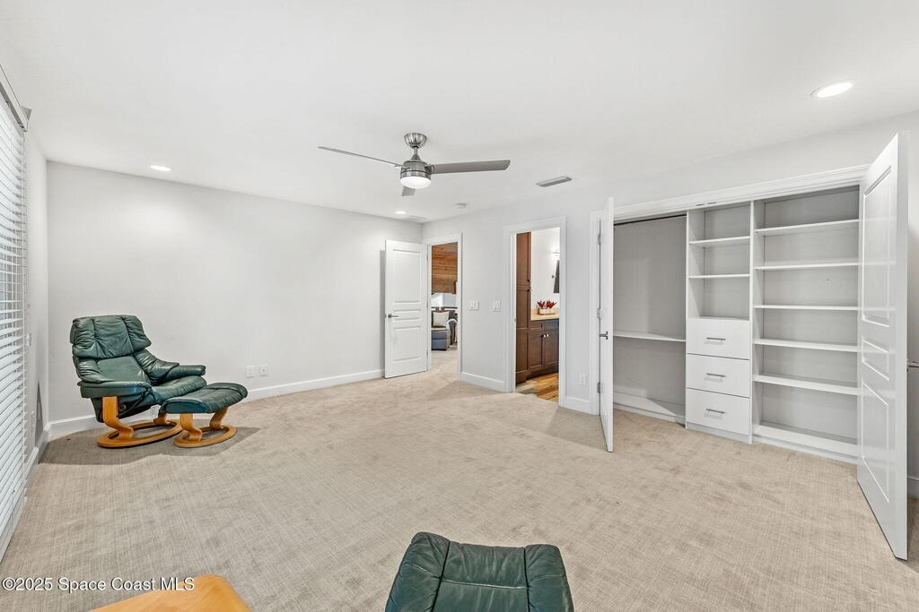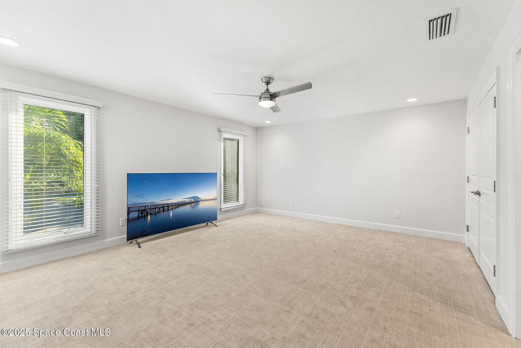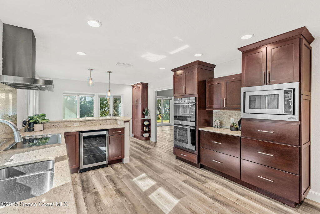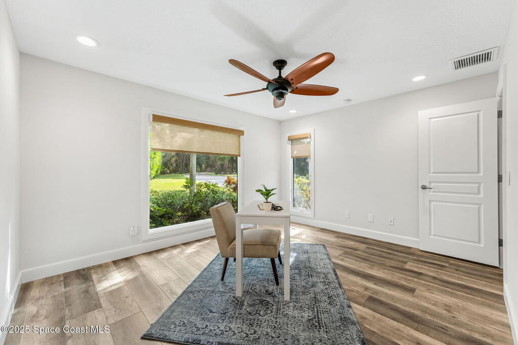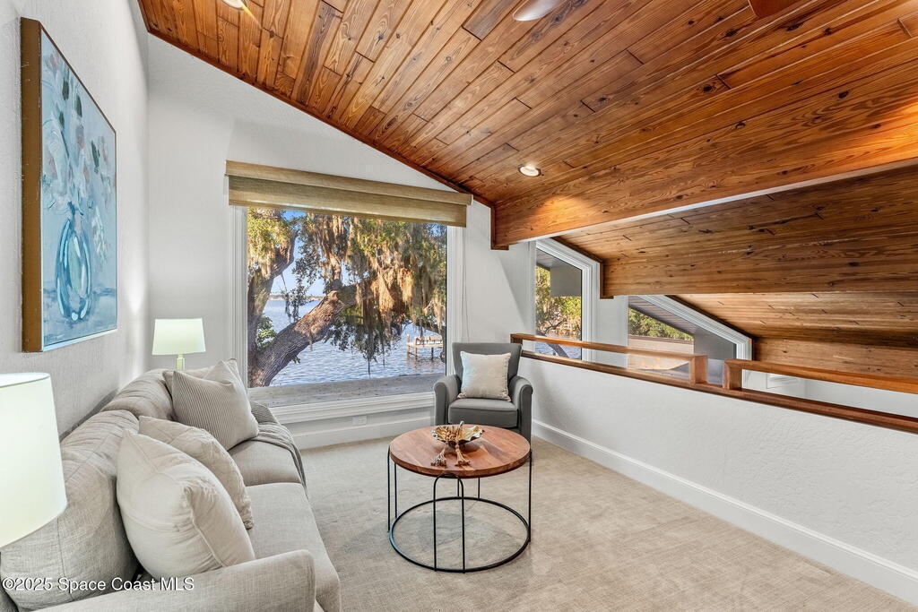 Spectacular direct Indian Riverfront home featuring 3 bedrooms plus an office, completely renovated in 2017 to combine modern design with subtle historic charm. The open layout emphasizes light and connection, with soaring glass, minimal walls, and seamless flow between indoor living spaces and lush outdoor gardens. Vaulted ceilings, LVP and tile flooring, and thoughtfully curated finishes create a warm, modern aesthetic that balances comfort with style. The first-floor primary bedroom offers privacy and river views, while the private dock with state-of-the-art Sure Step decking provides direct access to boating, kayaking, and fishing on the Indian River. Additional features include a newer paver driveway, professional landscaping, hurricane-rated windows, and dual air conditioners. Perfectly suited for those seeking Florida waterfront living, this home adapts effortlessly between contemporary and coastal-chic with just a change in furnishings.
