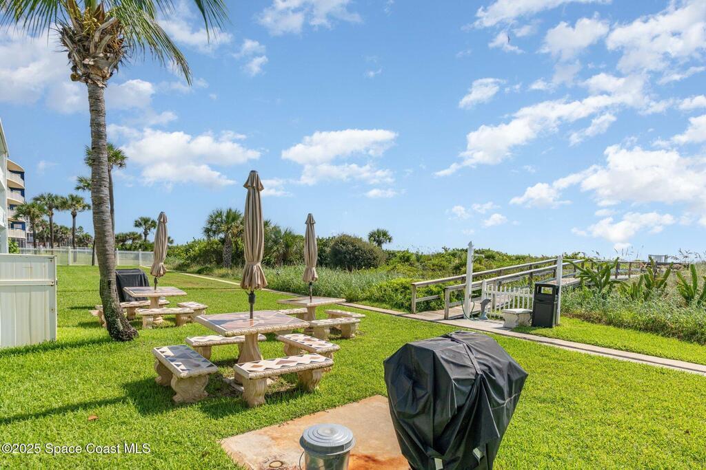 What a great 1 bed 1 bath in this Direct Ocean front community with the beach only steps away. This third-floor unit is fully Furnished and fully equipped with all you need for your stay at World Famous Cocoa Beach. Community amenities offer a Heated pool, small splash pool, on-site Laundry, BBQ & picnic area, private beach access, beach-side shower & clubhouse. Rent includes water, cable & wi-fi. Located within walking distance to dining, entertainment, nightlife, shopping & the Cocoa Beach Pier. Available for 3 months minimum at a higher rate plus12% tax. Available for the 2025-2026 Season. No pets please.