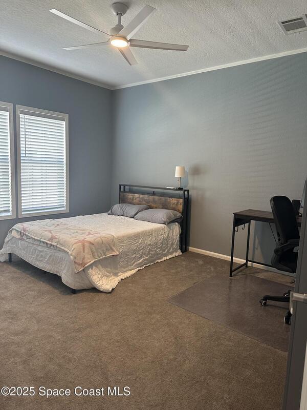 Come see this beautiful 2023 Jacobsen 3/2 home in Barefoot Bay. Inside this home you'll find a modern split floor plan giving the perfect balance of privacy & comfort; an open concept kitchen with stainless appliances, great for entertaining guests; spacious living room. Primary suite offers walk-in closet & oversized shower. Convenient interior laundry area. This home has a Golf cart and/or motorcycle garage. Enjoy your morning coffee on your front porch! Barefoot Bay has access to resort style amenities such as: 3 community pools, clubhouse, lounges, 18 hole executive golf course, private Atlantic ocean beach access, Tennis, bocci, shuffleboard, walking trails, and fishing pier. Very active community with social events & entertainment all year long!