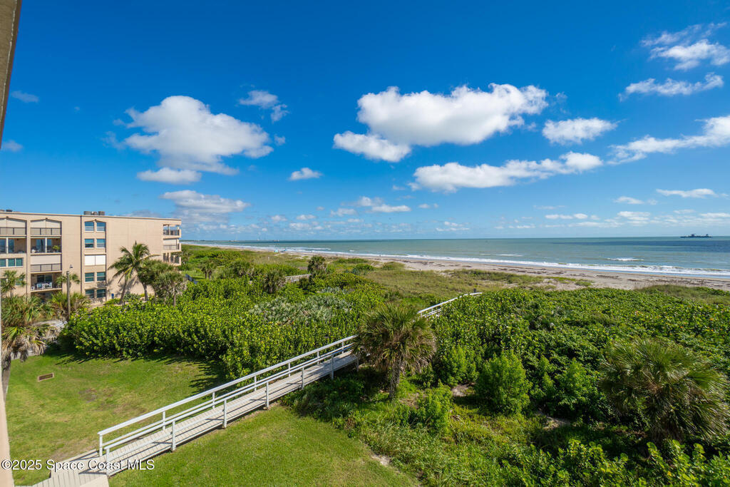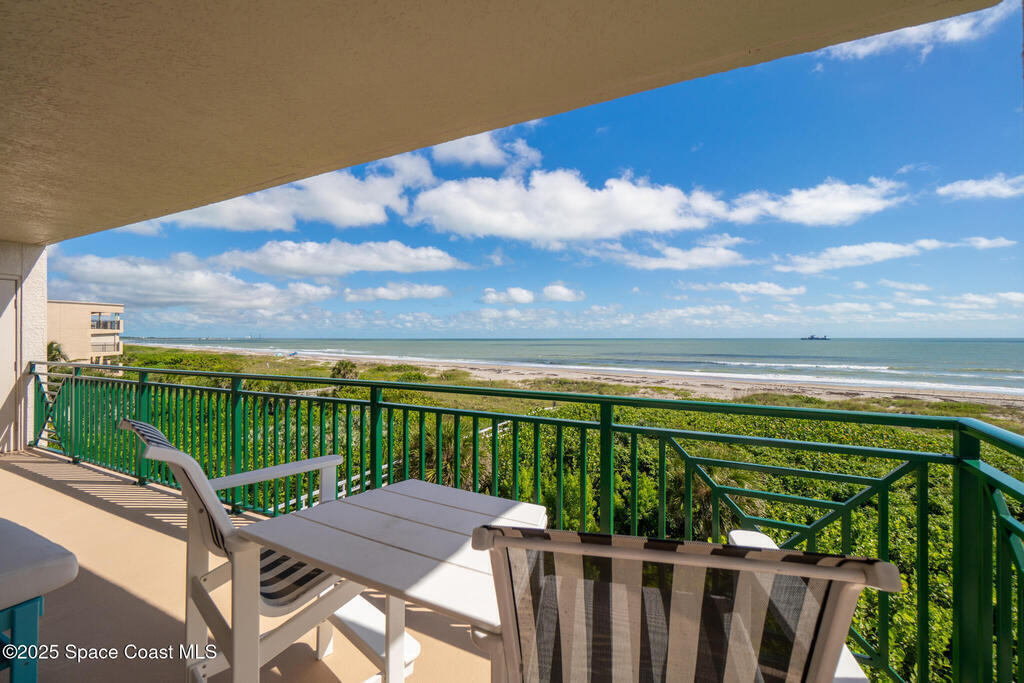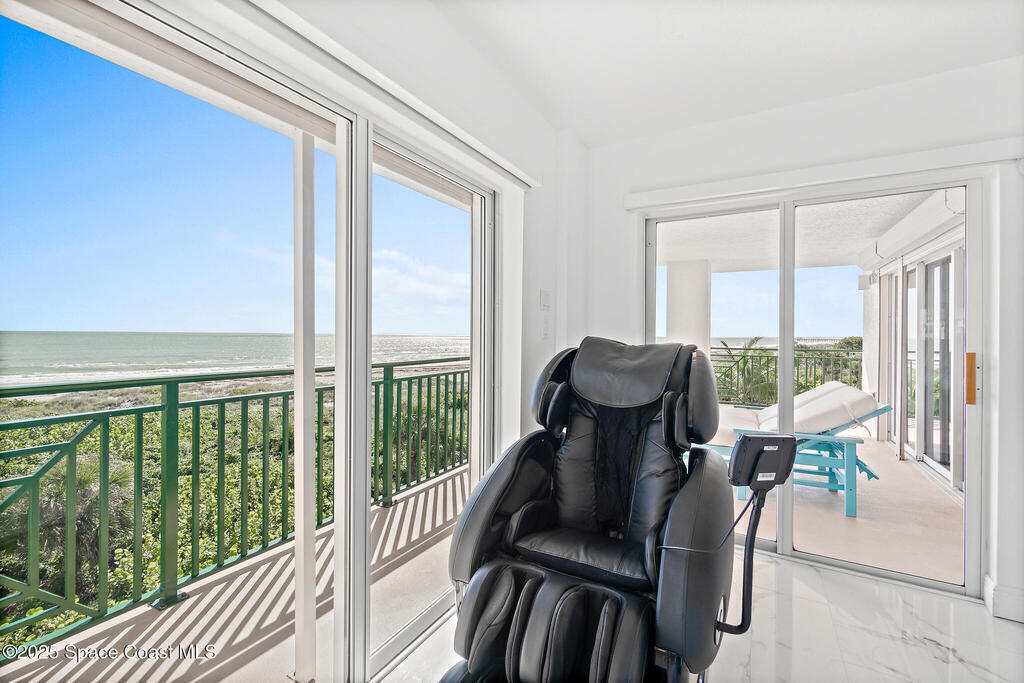 Step through the door and the rest of the world slips away. Inside every room feels intentional. The open living area flows effortlessly toward the ocean with walls of glass framing endless views. The kitchen was designed for both the cook and the conversationalist featuring stone countertops, a full pantry wall and stainless steel appliances. The primary suite is a pure retreat. Wake up to sunrise over the water, unwind in the double walk in shower and step into your private sauna to melt away the day. Two additional bedrooms each offer their own bath, privacy and comfort for guests and family. Every window is dressed in either plantation shutters or automated shades, giving you total control over the light and mood. Step outside and the balcony becomes your front row seat to the Space Coast's signature moments. The furnishings are negotiable, making this turn-key opportunity even more effortless. This is not just oceanfront living it's the Florida Lifestyle.