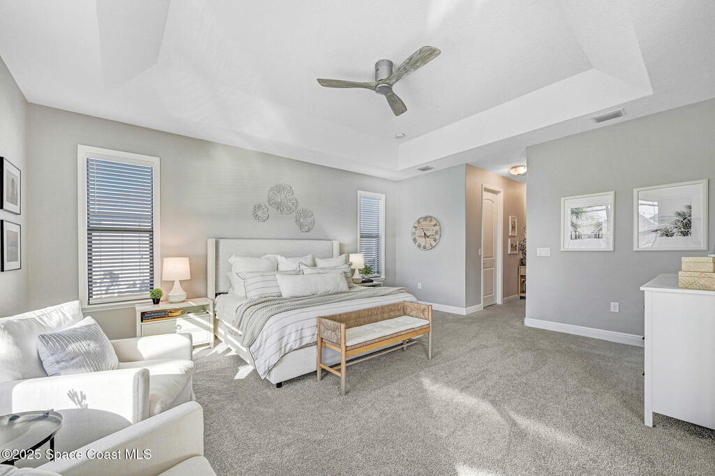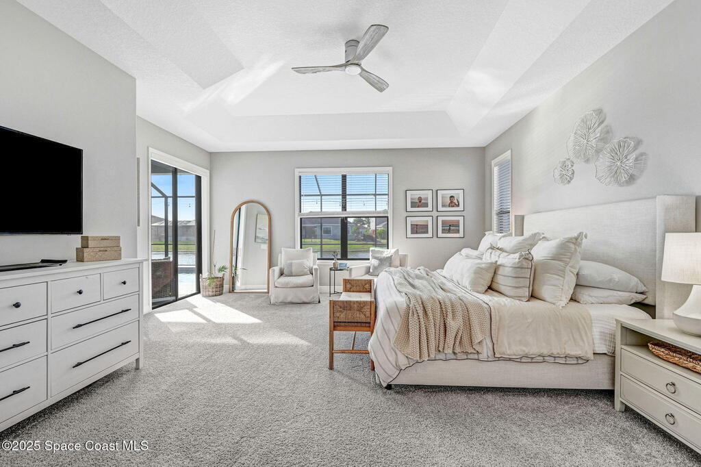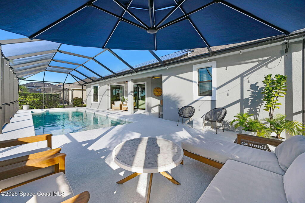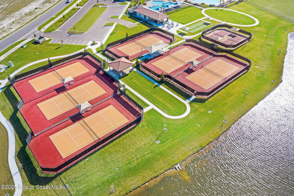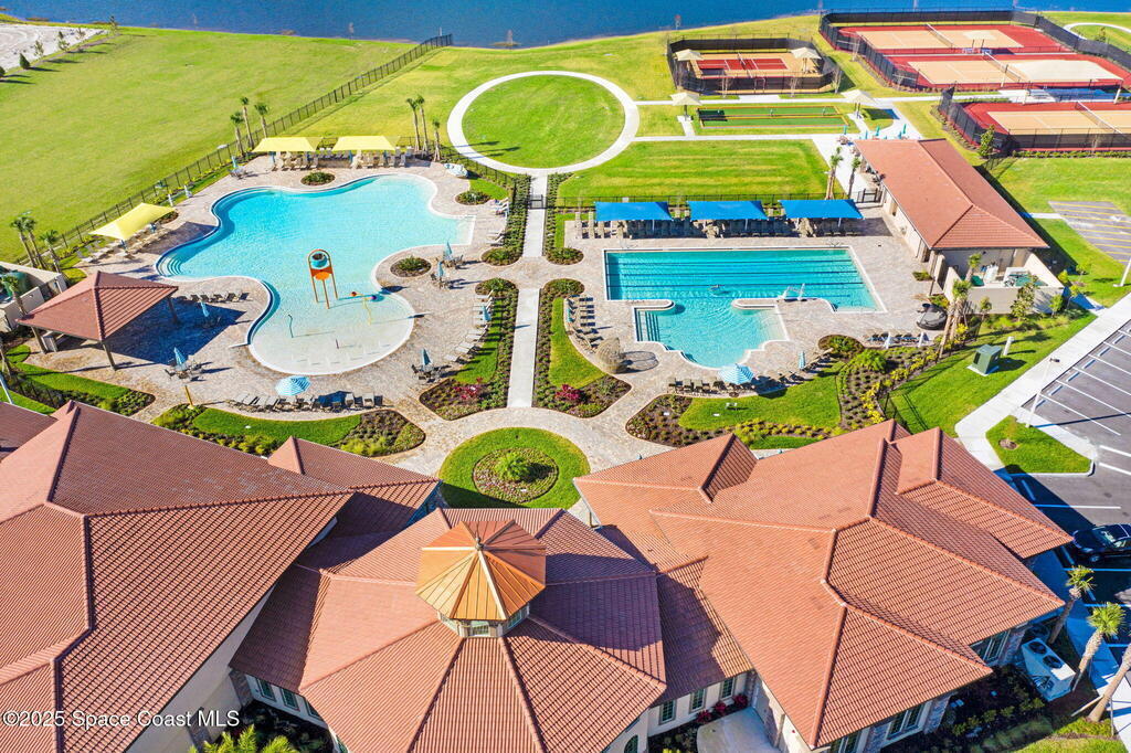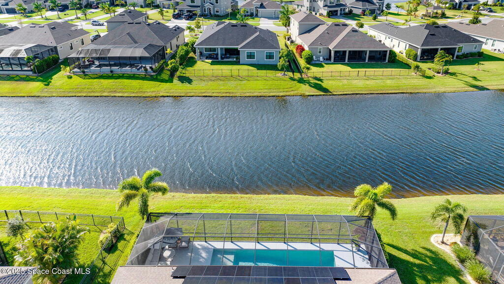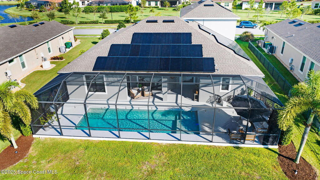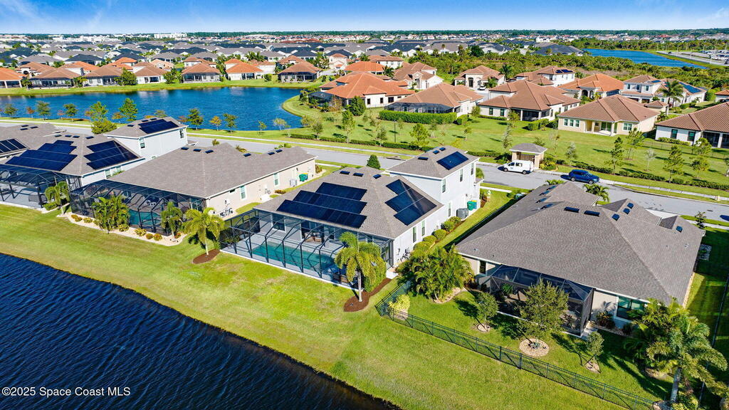 Stunning lakefront Montgomery II model featuring 5 bedrooms, 4 full baths, pool, and home office! This spacious smart home offers modern comfort and convenience with phone-controlled lighting, locks, appliances, and remote blinds. The primary suite is on the first floor for easy living, while an upstairs suite with a bonus room is perfect for guests or a media space. Enjoy an upgraded electrical system with a vehicle charging outlet and paid-off solar panels for very low electric bills. The open-concept layout flows seamlessly to the screened pool and patio overlooking the lake. The oversized 2-car garage provides extra space for a golf cart or storage, and the paver driveway adds great curb appeal. Located in one of the area's most popular communities, residents enjoy resort-style amenities including multiple pools, playground, pickleball, tennis, and basketball courts. Luxury, efficiency, and lifestyle--all in one exceptional home!