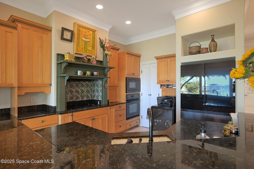 As you drive through a canopy of ancient oaks over antique chicago brick, you will enter a custom-designed home for this unique location on Indian River. Entering through double doors, you are greeted by a natural slate waterfall, with a natural green marble stone floor to ceiling fireplace to your left and a custom solid wood one piece York staircase to your right. Stunning river and natural stone waterffall pool views from all main living areas welcome you beyond. Kitchen features center island. Antique fireplace mantle over cooktop and New top-of-the-line 4 door bespoke Samsung fridge with family hub and music are state-of-the-art. Second staircase from breakfast area will accomodate lift. Views from Primary Suite are spectacular, from Bedroom, adjoining sitting room/office,and huge master bath with marble floors, double jacuzzi tub and all new fixtures. Second full bath has antique cast iron porcelain tub, marble floor antique vanity with Onyx top. Guest bedroom features a