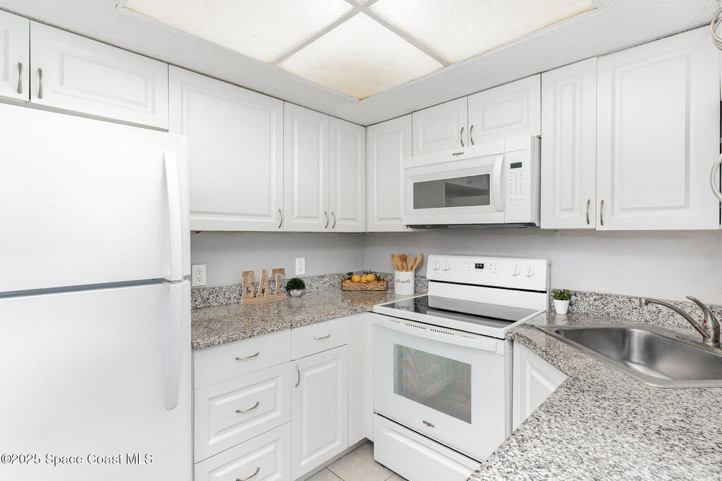 Located in the peaceful community of Country Gardens, this 2BD/2BA ground-floor condo offers a split floor plan & stylish tile flooring throughout--no carpet! The updated kitchen features crisp white cabinetry, white appliances & granite countertops. Enjoy an updated guest bathroom, as well as an updated tile walk-in shower in the primary bathroom. Two sets of sliding doors lead to a screened-in porch, while in-unit laundry adds convenience. The community offers a tranquil setting with mature landscaping & a refreshing pool. Low HOA of $312/month includes cable, internet, water, sewer, trash, pest control, exterior maintenance, insurance & roof replacement. 6-month rental minimum, 1 pet up to 15lbs allowed. Just minutes to shopping, dining, FIT, L3 Harris & the Space Coast's beautiful beaches! Schedule your showing today!