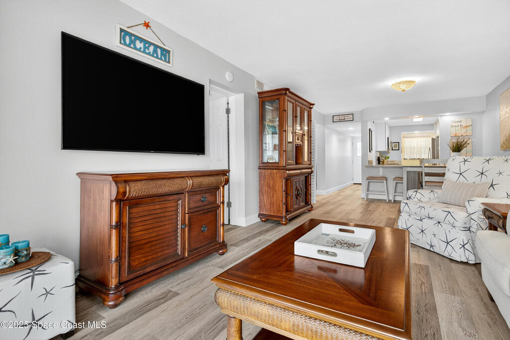 Beachside living at its finest! Also listed for sale, MLS #1056518 This beautifully updated, move-in-ready condo, with oceanfront living is ready to move in! Awaken to spectacular sunrises in this fully renovated 2-bedroom, 2-bath condo in Cocoa Beach! Situated in the central heart of the island, this modern, spacious end unit has Ocean views on a wonderful wrap-around patio with a storage shed protected by wrap around hurricane shutters. (New in 2023). Watch rockets galore from this luxury condo patio. Wonderful beach walks, vibrant sunrises and a private beach access await you! Ground floor. No elevator needed, Low condo dues! The complex has recently undergone concrete restoration. This is a highly maintained complex ensuring long-term beauty and sustainability.