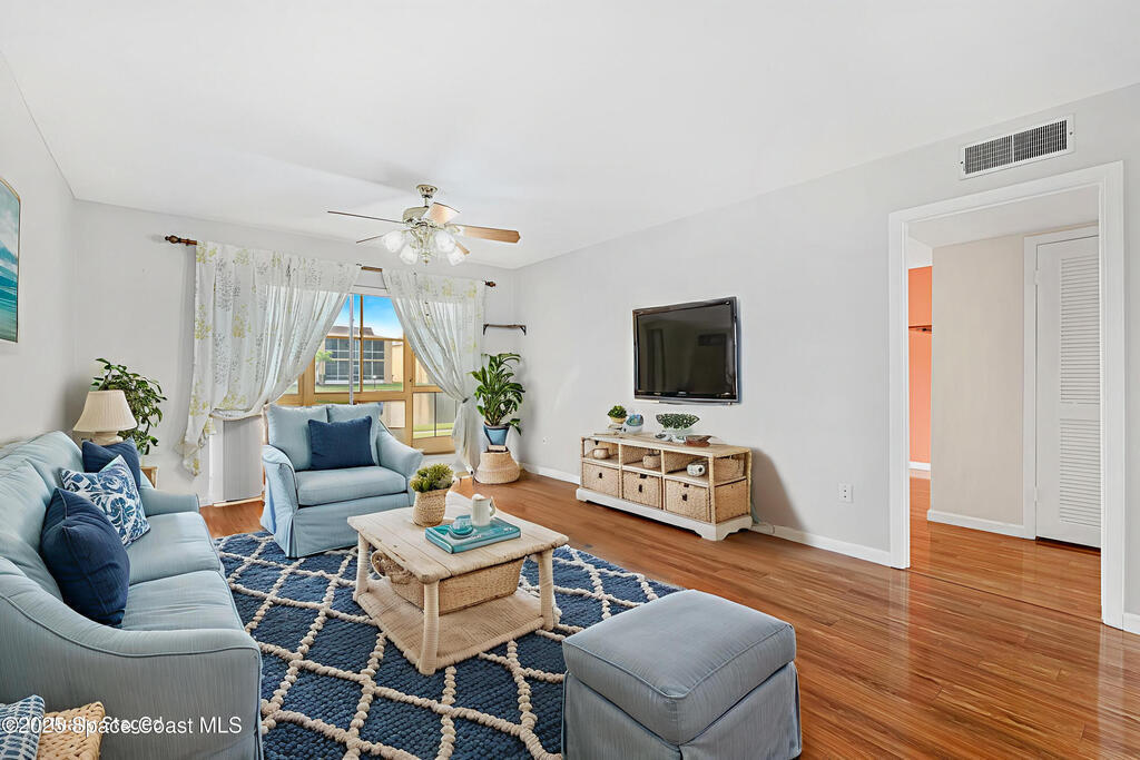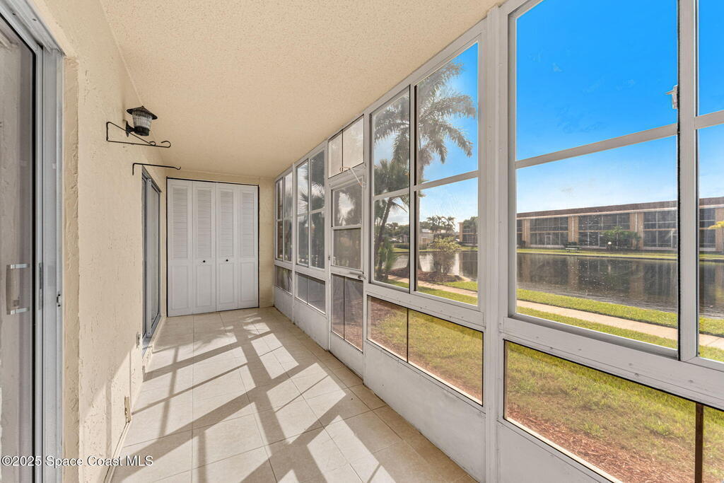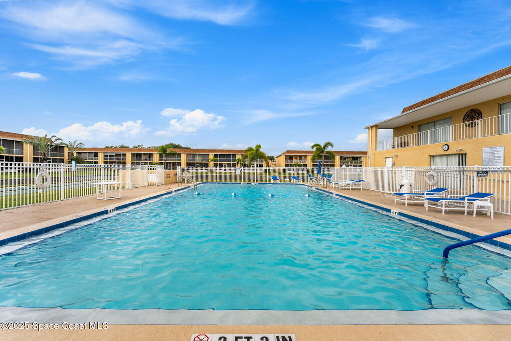 Beautifully Maintained 55+ Community! Highly sought-after first-floor unit with private parking right outside your door. This move-in-ready condo features wood flooring in the main living area and an open living/dining layout overlooking a peaceful pond. The spacious kitchen offers wood cabinetry, ample counter space, newer appliances, and a convenient breakfast bar. The primary suite includes sliders to the screened porch with tranquil pond views and a walk-in closet. Enjoy plenty of storage with large closets inside and double closets on the porch. Community amenities include a pool, clubhouse, tennis, shuffleboard, walking paths, and RV/boat storage. HOA covers grounds, water, trash, pest control, cable, internet, and recently replaced roof. Centrally located near shopping, dining, Target, grocery stores, pharmacies, and SR-528 for easy beach and Orlando access.