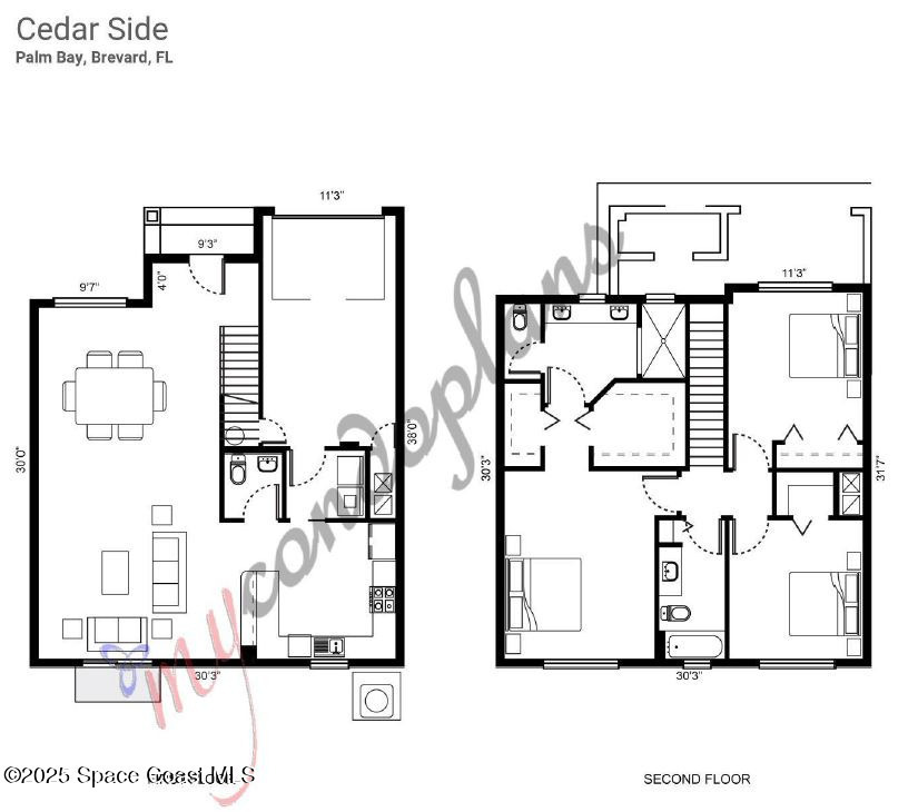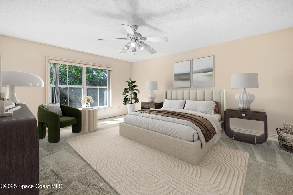 Discover the perfect blend of comfort, style, and convenience at The Cedar Side Condominiums. This 3-bedroom, 2.5-bath home offers a spacious first floor ideal for relaxing or entertaining. Upstairs, the oversized primary suite features two walk-in closets, while the second bedroom includes its own ensuite bath. Recent updates include a new roof (Dec 2023), fresh paint, new ceiling fans, an epoxy-coated garage floor, and a newer water heater. Step outside to your private backyard oasis surrounded by lush landscaping. Enjoy resort-style amenities--pool, clubhouse, and tennis courts--all just minutes from I-95, top-rated schools, and Palm Bay's best shopping and dining.
